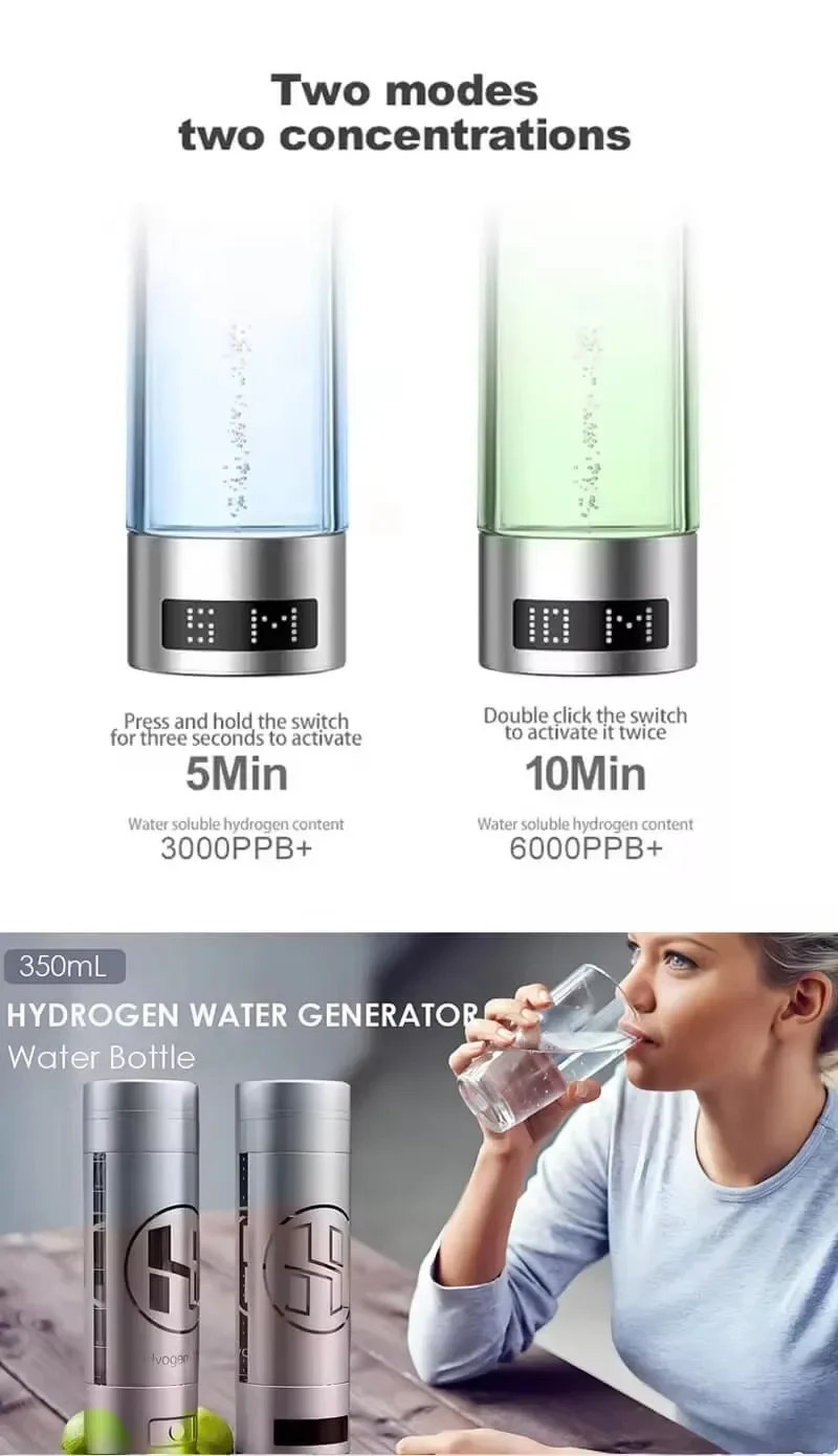 ด้วยเอาต์พุต 6000ppb เครื่องกำเนิดน้ำนี้ผลิตน้ำไฮโดรเจนคุณภาพสูง ซึ่งให้ประโยชน์ต่อสุขภาพสูงสุด