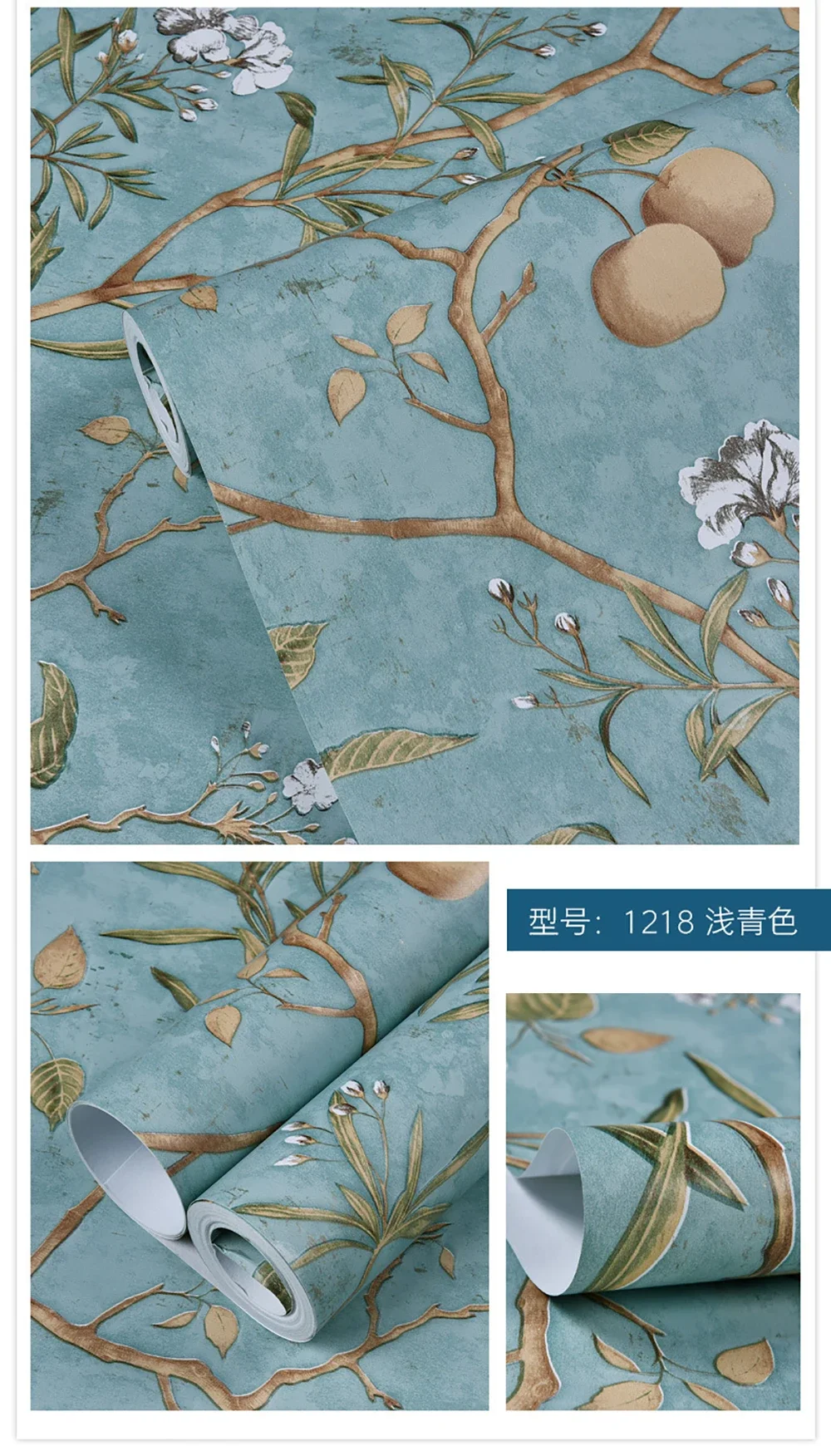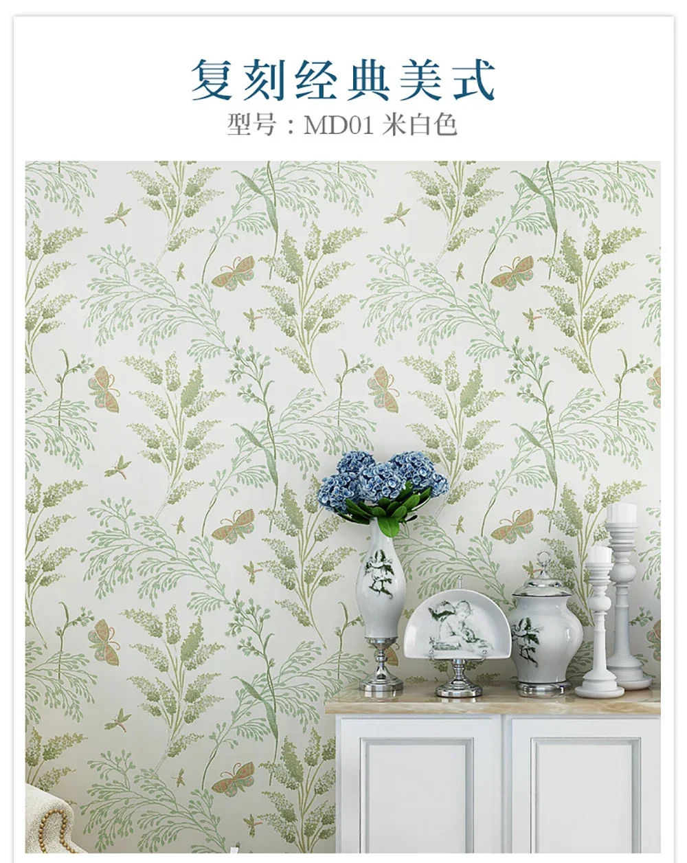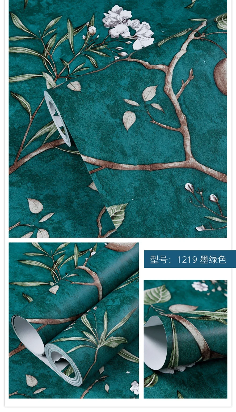วินเทจดอกไม้ผีเสื้อนกสติ๊กเกอร์ติดผนังตู้เสื้อผ้าตกแต่งใหม่กาวตนเองไม่ทอวอลล์เปเปอร์ในม้วนตกแต่งห้องนอน