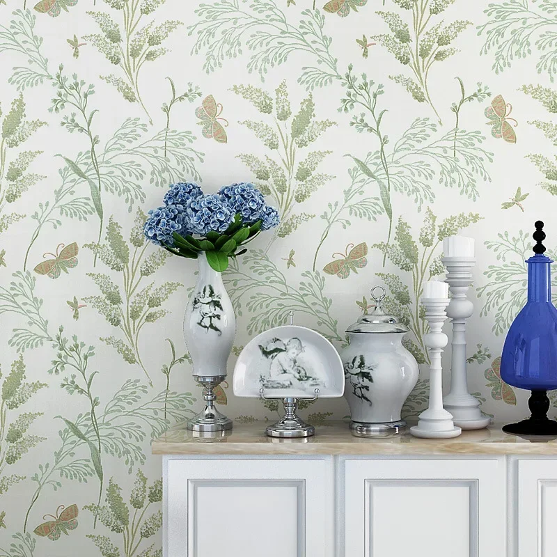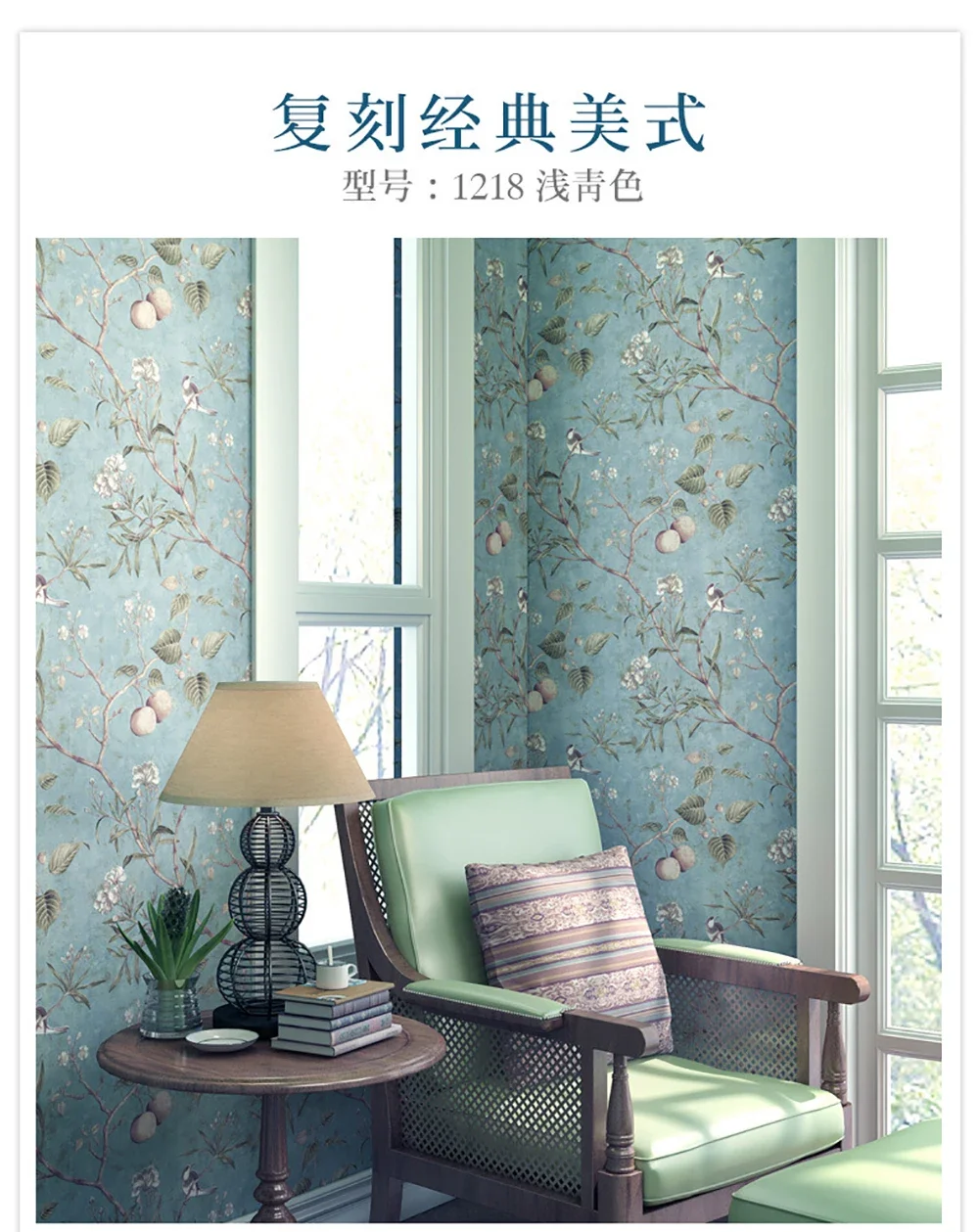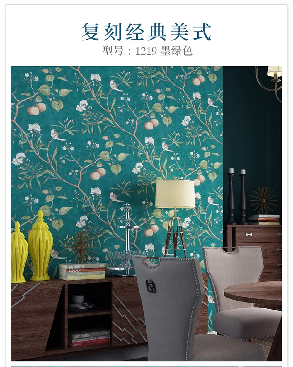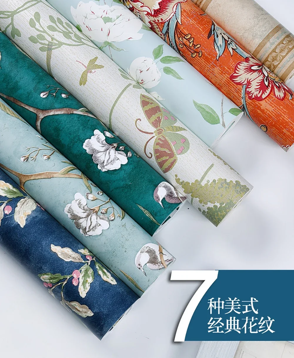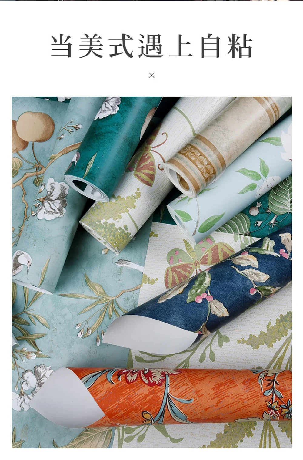 วินเทจดอกไม้ผีเสื้อนกสติ๊กเกอร์ติดผนังตู้เสื้อผ้าตกแต่งใหม่กาวตนเองไม่ทอวอลล์เปเปอร์ในม้วนตกแต่งห้องนอน