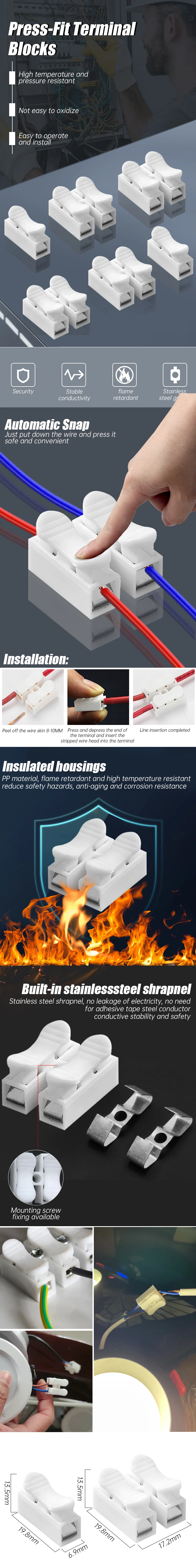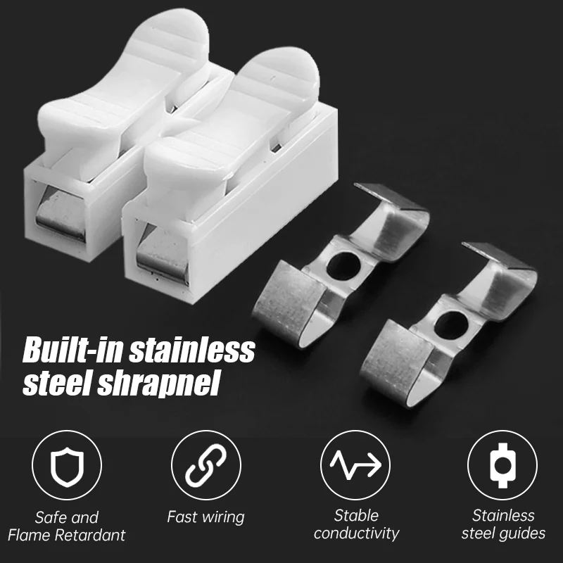 วัสดุคุณภาพสูง: ข้อต่อสวมเร็วแบบสปริง, คลิปสีขาว, สูงสุดแรงดันไฟฟ้า: 250V สูงสุดปัจจุบัน 10A.