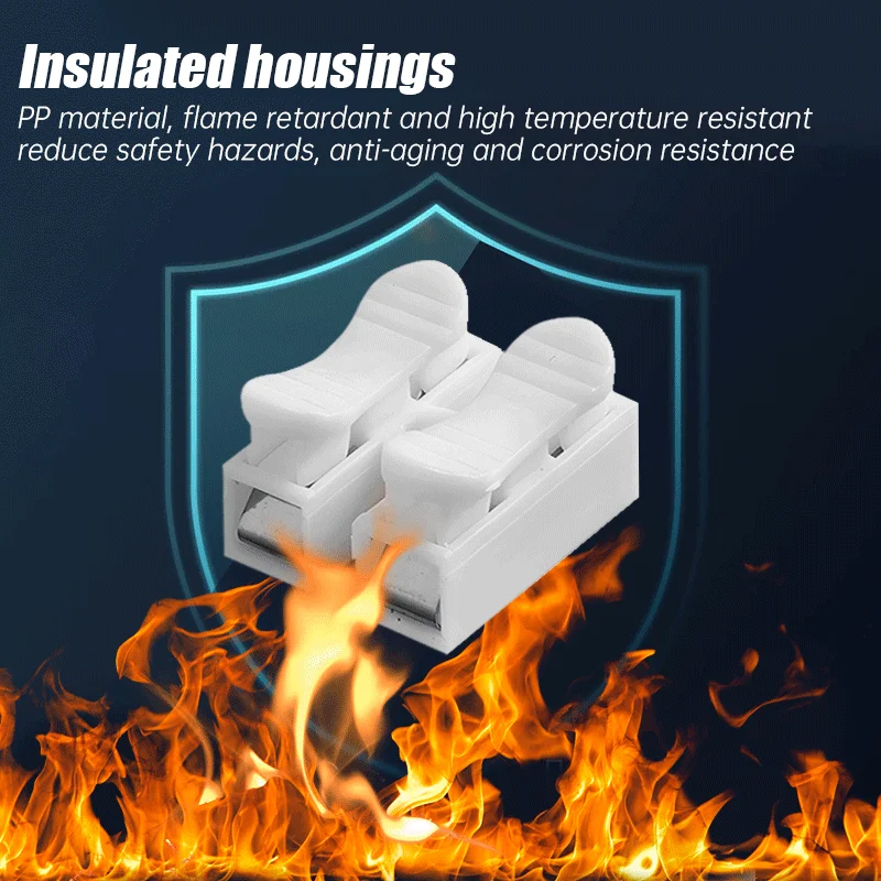 ฉนวนกันความร้อน: ขั้วต่อด่วนแบบอิเล็กทรอนิกส์นี้ทําจากพลาสติกเทคโนโลยีสารหน่วงไฟคุณภาพสูง ไม่เพียงแต่ปลอดสารพิษ อายุการใช้งานยาวนาน แต่ยังทนต่อการกัดกร่อนอีกด้วย