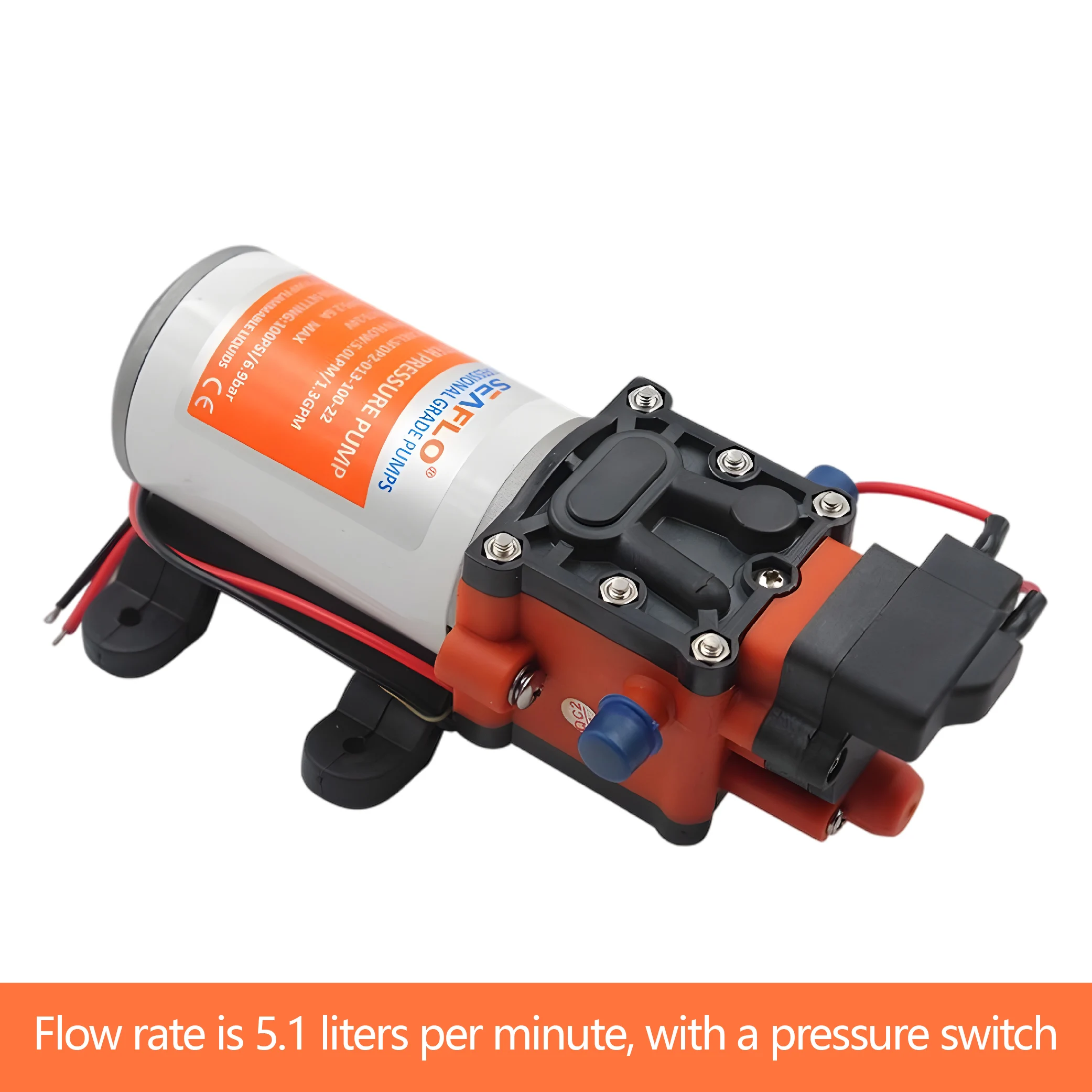ปั๊มไดอะแฟรมแรงดันสูง ไหลแรง DC12/24V 5LPM ระยะดูด 1.2 เมตร ปั๊มฉีดพ่นอัตโนมัติเต็มรูปแบบ ปั๊มไฟฟ้าขนาดเล็กแบบดูดน้ำเองได้