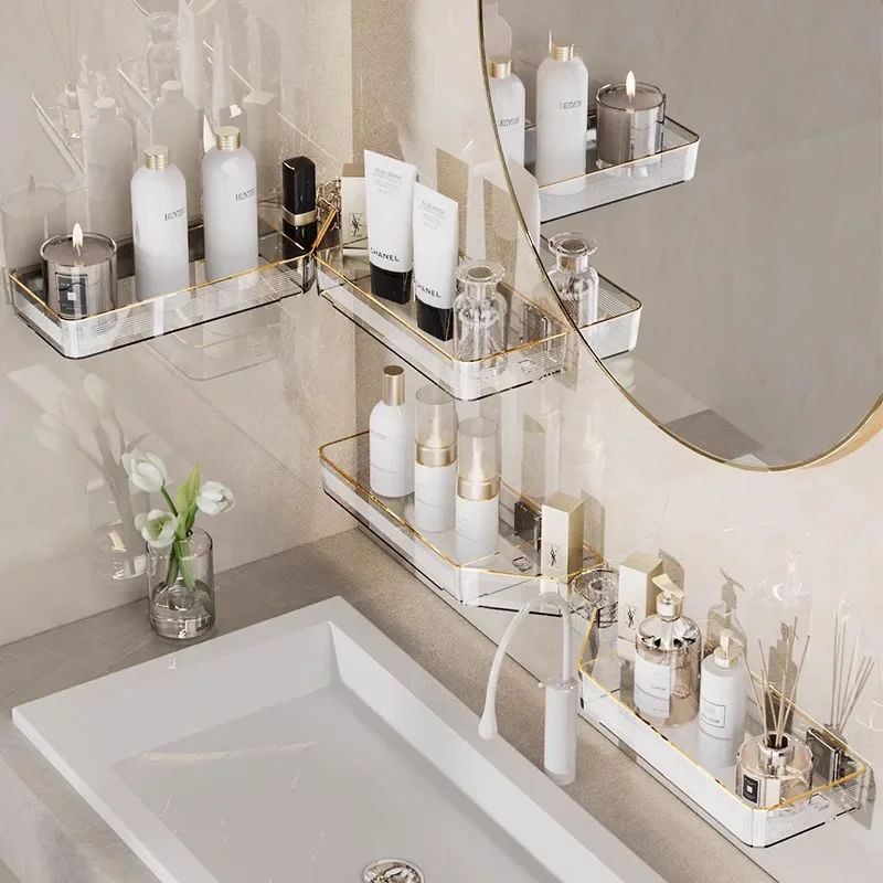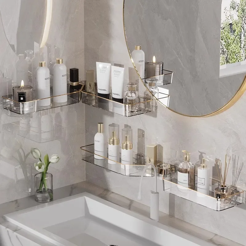 ชั้นวางเข้ามุมห้องน้ําแบบไม่เจาะรูติดผนังอ่างล้างจานติดผนังสําหรับจัดระเบียบรายการชั้นวางของในห้องน้ํา