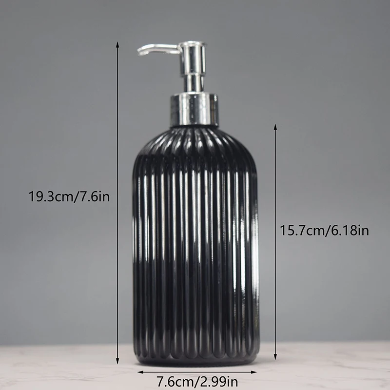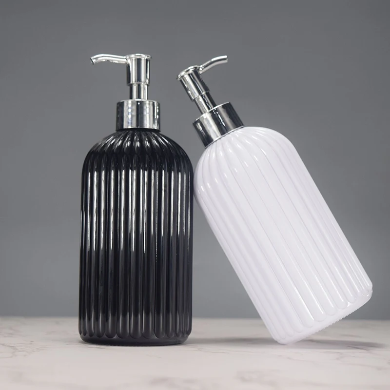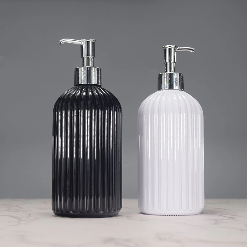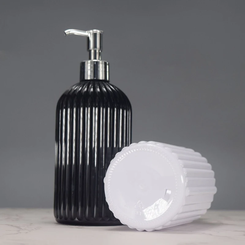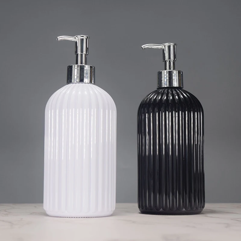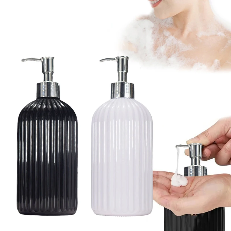 ขวดสบู่ลายทางสีดำ/ขาว ขนาด 500 มล. สำหรับห้องน้ำ ฝักบัว ล้างผม แชมพู แบบเติมได้ ใช้ในครัวสำหรับล้างจานและมือ