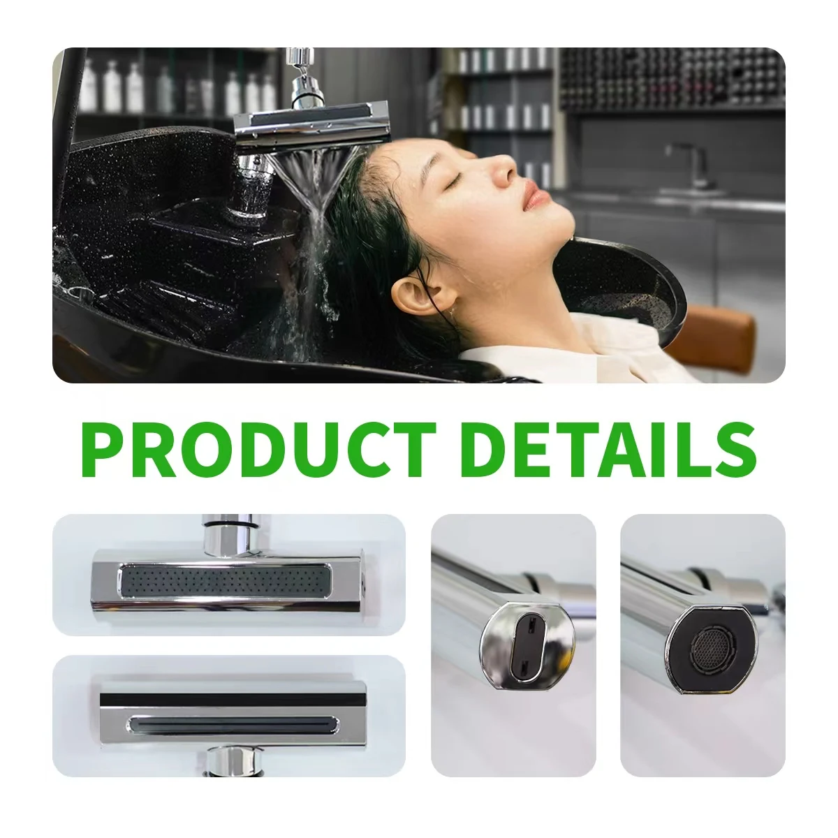 อุปกรณ์เสริมเตียงสระผมสำหรับร้านเสริมสวยและสปา พร้อมหัวฉีดน้ำแบบน้ำตก หมุนได้ 360 องศา ระบบหมุนเวียนน้ำสำหรับสปาผม