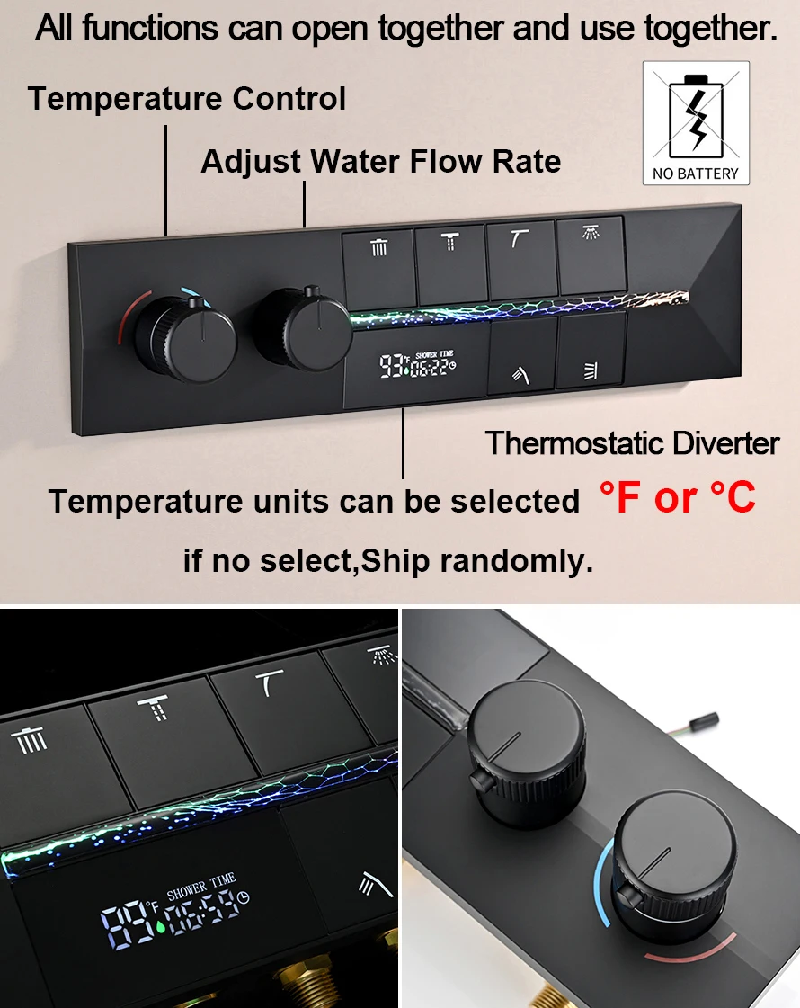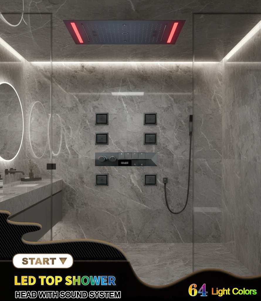ชุดฝักบัวอาบน้ำคุณภาพสูง M Boenn สีดำด้าน พร้อมไฟ LED อัจฉริยะ หัวฝักบัวสปา ให้ประสบการณ์การอาบน้ำแบบฝนตกในพื้นที่ส่วนตัว