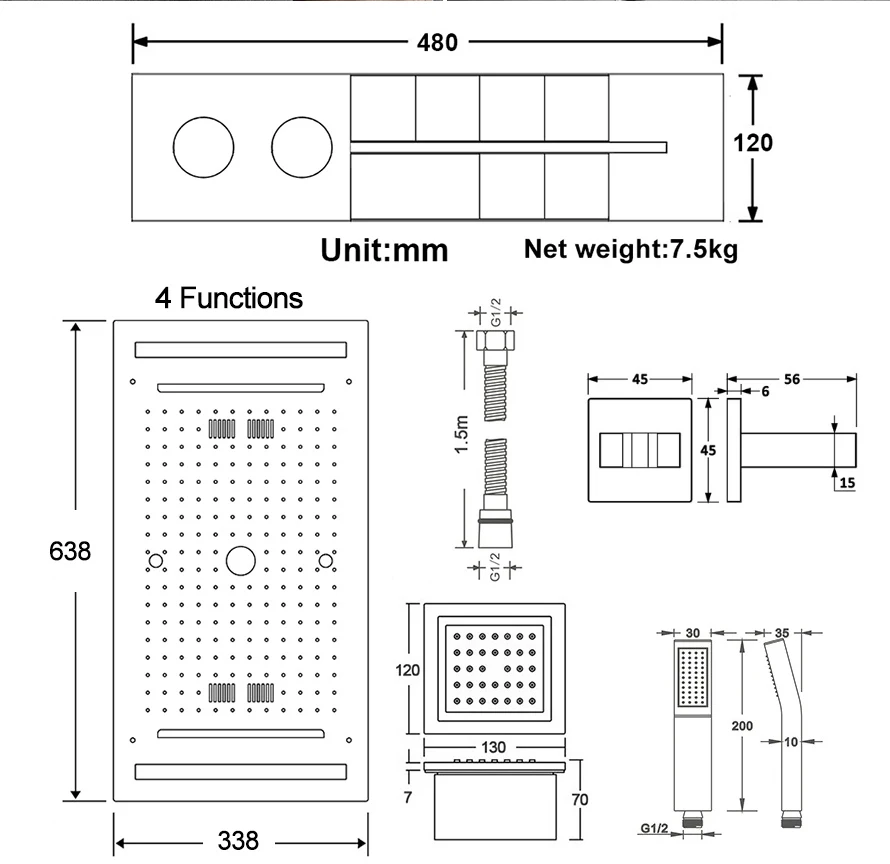 Rainfall, Waterfall, Water Column, Mist, Body Jet Sprayers, Hand Shower, Spout |