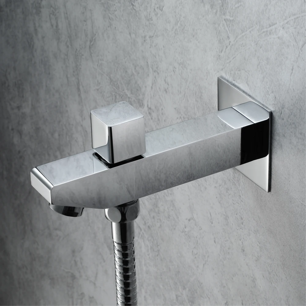 ก๊อกน้ําอ่างอาบน้ําทองเหลือง 2 ฟังก์ชั่น Outlet ติดผนังอาบน้ําก๊อกน้ํา TAP สีดําสําเร็จรูป