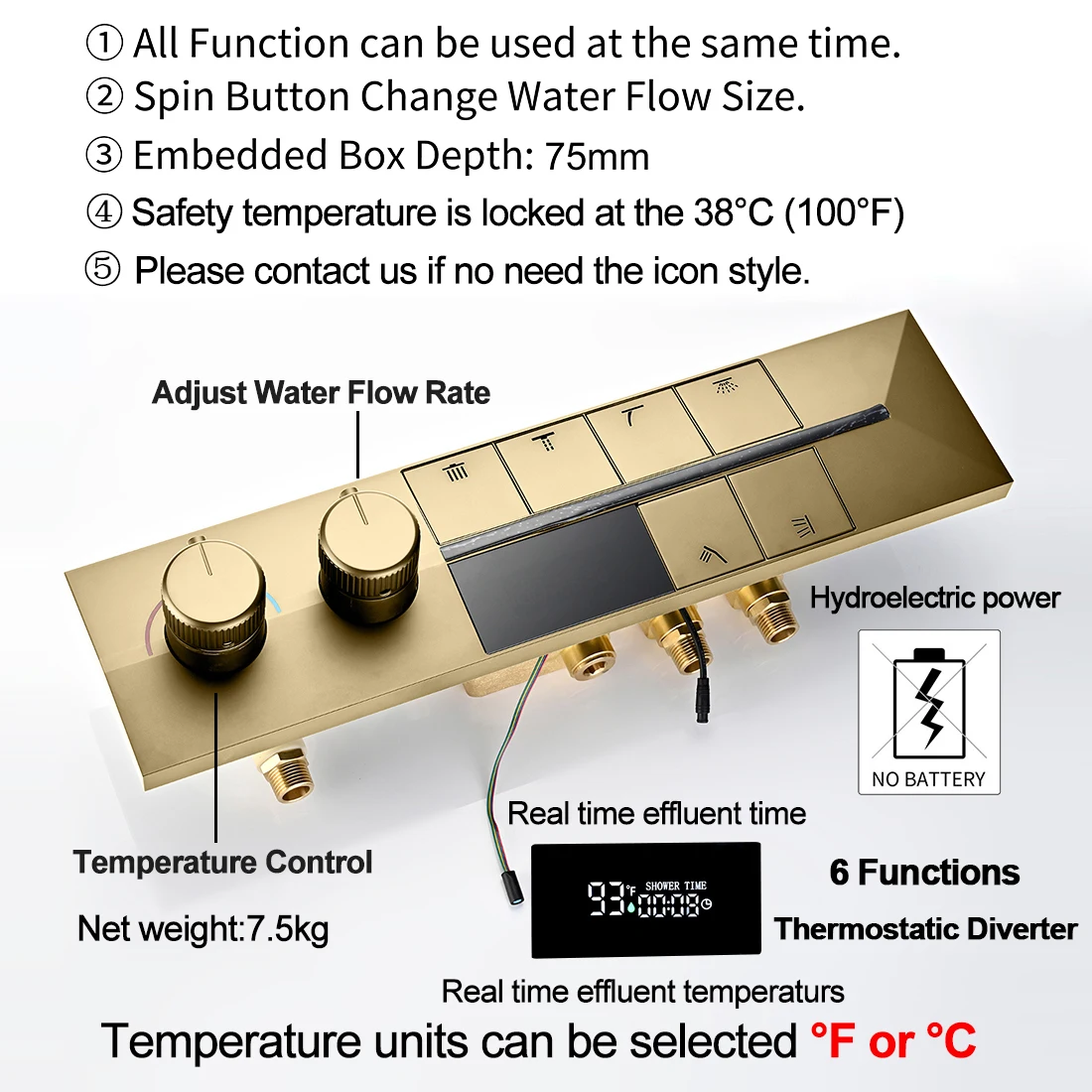 ชุดฝักบัวอาบน้ำคุณภาพสูง M Boenn สีดำด้าน พร้อมไฟ LED อัจฉริยะ หัวฝักบัวสปา ให้ประสบการณ์การอาบน้ำแบบฝนตกในพื้นที่ส่วนตัว