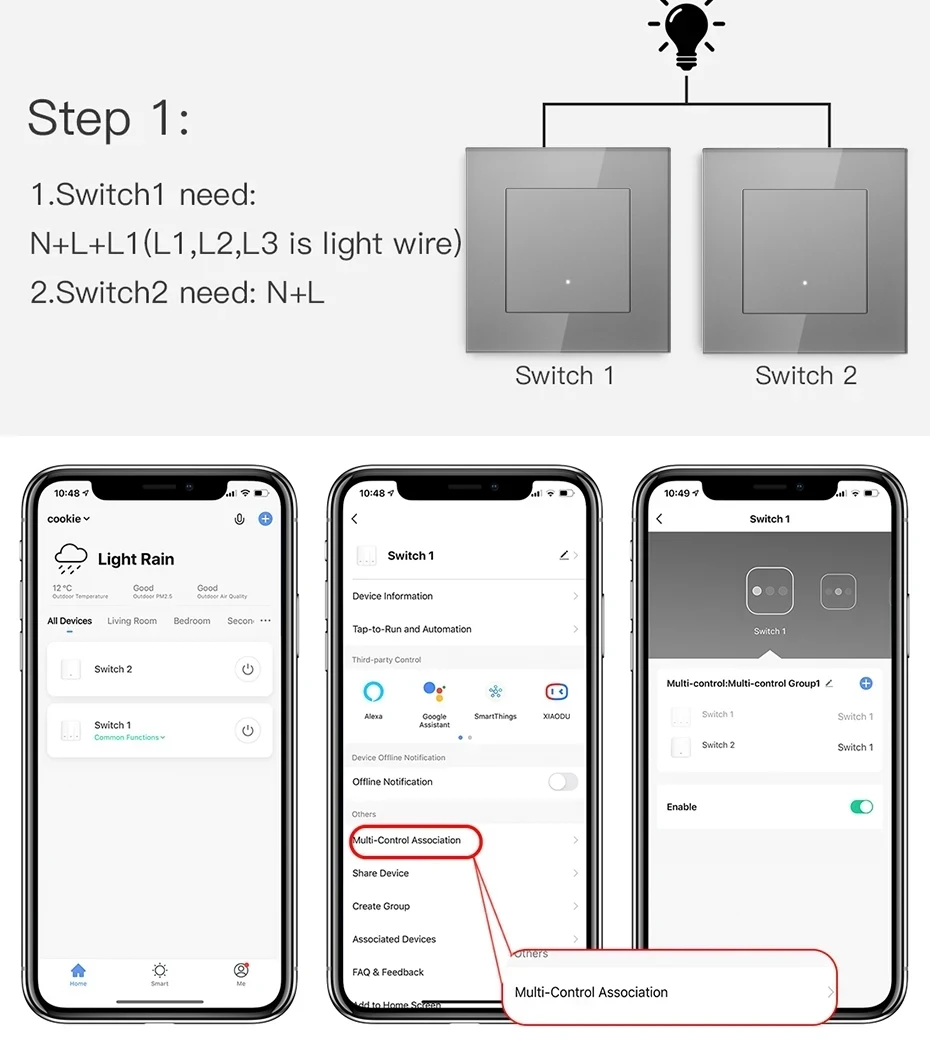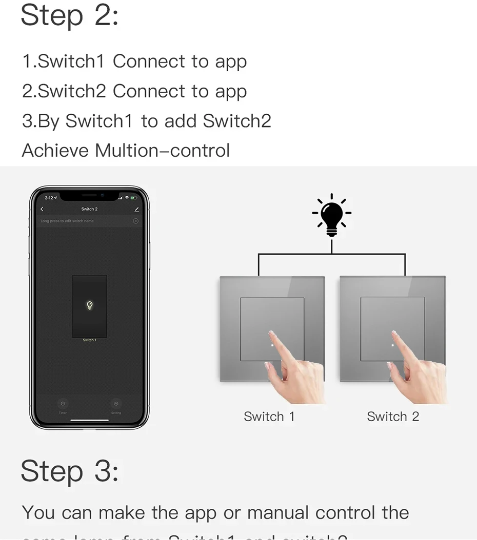 สวิตช์อัจฉริยะ Tuya WiFi แบบ EU/US RF433Mhz สวิตช์แบบสัมผัส ต้องใช้สายกลาง ใช้งานร่วมกับแอป Smart Life รองรับ Alexa และ Google 1/2/3/4 ช่อง