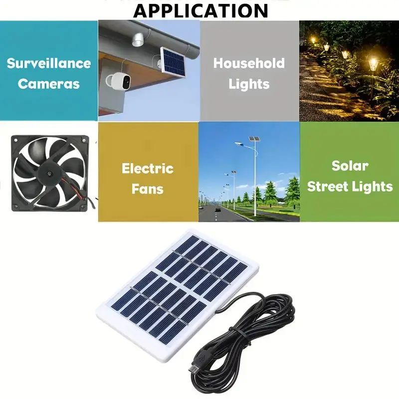 สายเชื่อมต่อไมโคร USB แผงโซล่า6V 3M สำหรับไฟในบ้านพัดลมไฟฟ้าและเครื่องใช้ไฟฟ้าขนาดเล็กอื่นๆ