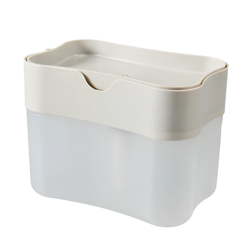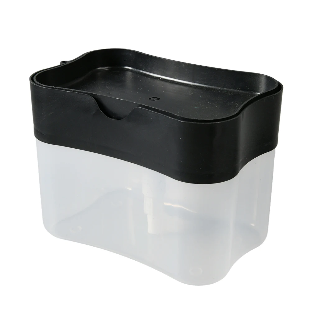 ดีไซน์ 2-in-1: ที่กดสบู่และที่วางในตัว ใช้งานสะดวกด้วยมือเดียวที่วางอุปกรณ์ในอ่างล้างจานพร้อมชั้นวางในตัว ช่วยจัดเก็บฟองน้ำ แปรงขัด ผ้าเช็ดทำความสะอาด และแผ่นขัดคราบได้ในที่เดียวอย่างสะดวกสบาย พร้อมทั้งช่วยป้องกันน้ำกระเด็นบนเคาน์เตอร์ครัว