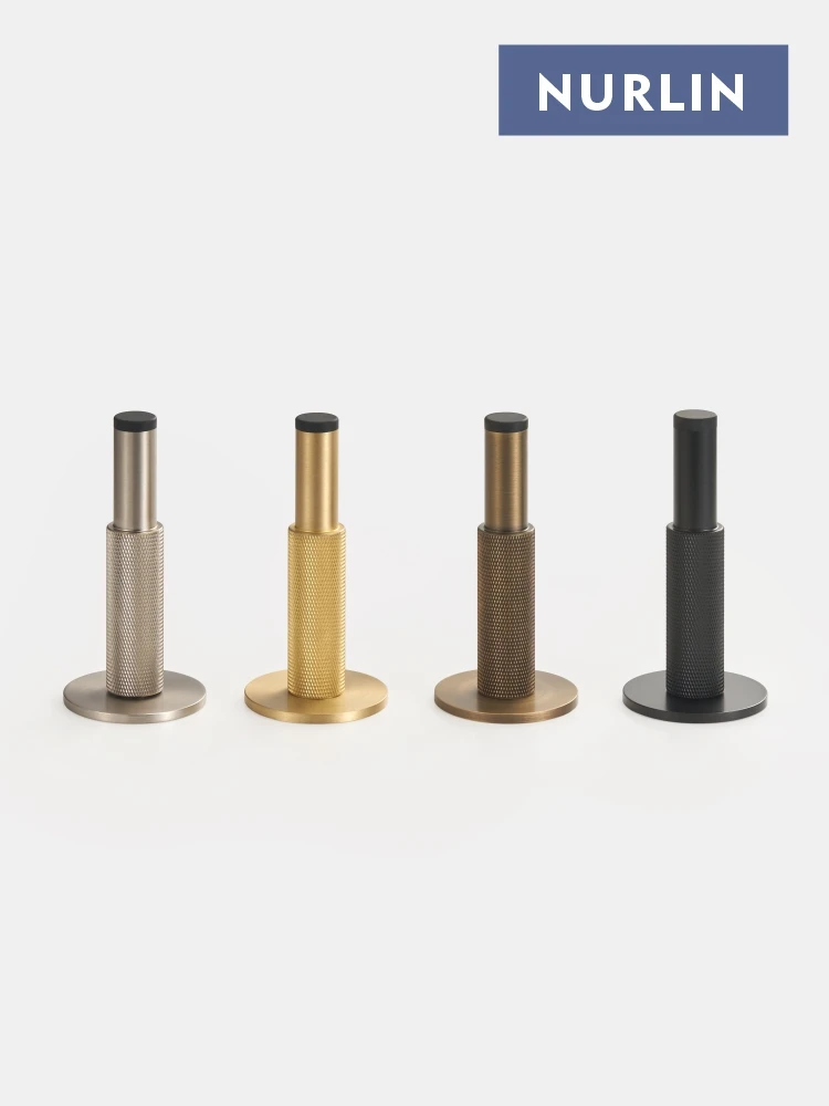 ตัวกันกระแทกประตูทองเหลืองแบบมีลาย Nurlin สำหรับประตูห้องน้ำ ตัวกันประตูแบบติดผนังหรือพื้น ทนทาน ตัวจับประตูแบบกันกระแทก สีทองเหลืองโบราณ