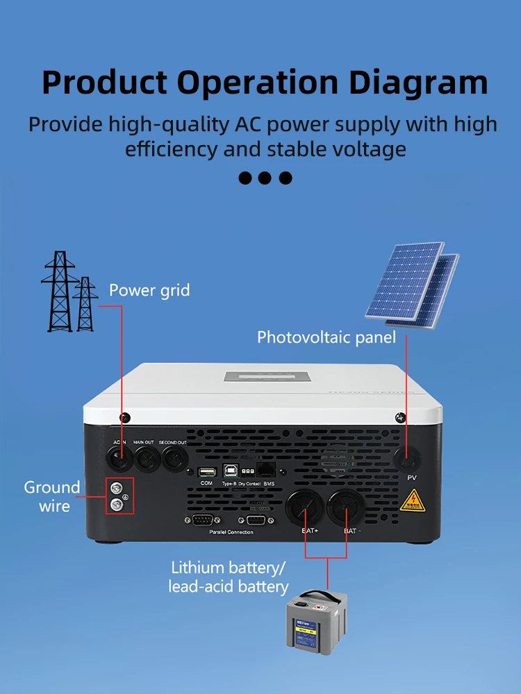3600 W-6200 W พลังงานแสงอาทิตย์อินเวอร์เตอร์พลังงานแสงอาทิตย์ PURE sine WAVE เหมาะสําหรับ RV Camping,บ้าน Energy Storage,ความปลอดภัยและ Backflow ป้องกัน