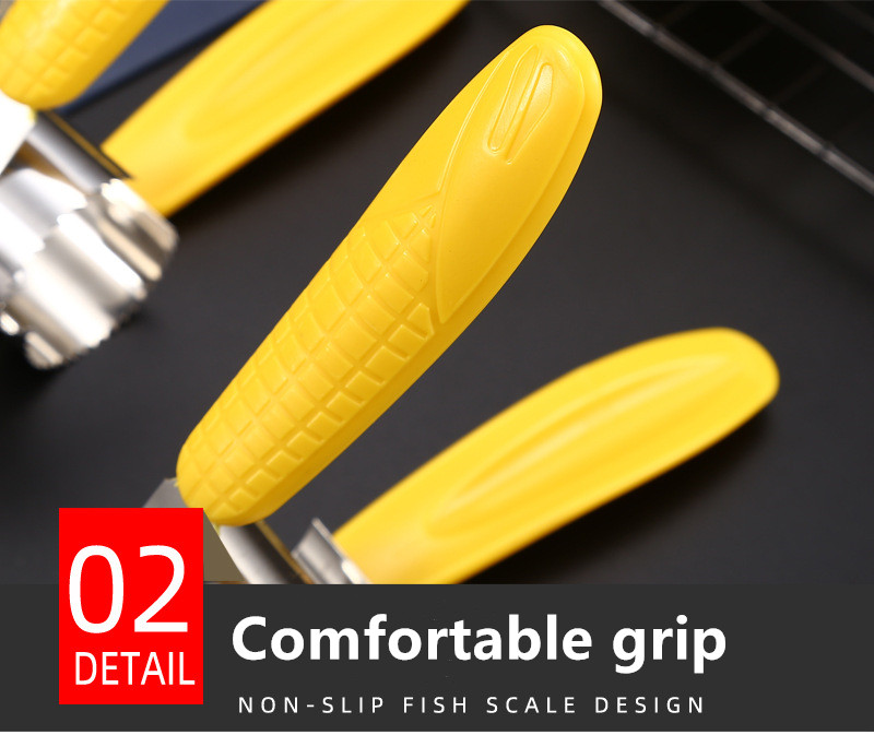 3.การออกแบบที่เป็นเอกลักษณ์, ที่จับถูกออกแบบให้เป็นรูปทรงข้าวโพด, สร้างสรรค์และสวยงาม, ที่จับรู้สึกสะดวกสบายในการถือ, ประหยัดความกังวลและความพยายาม