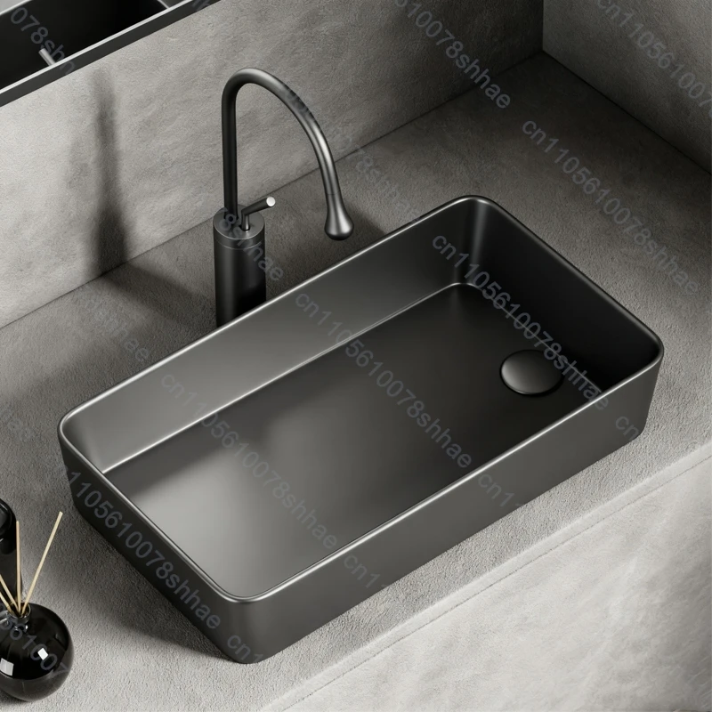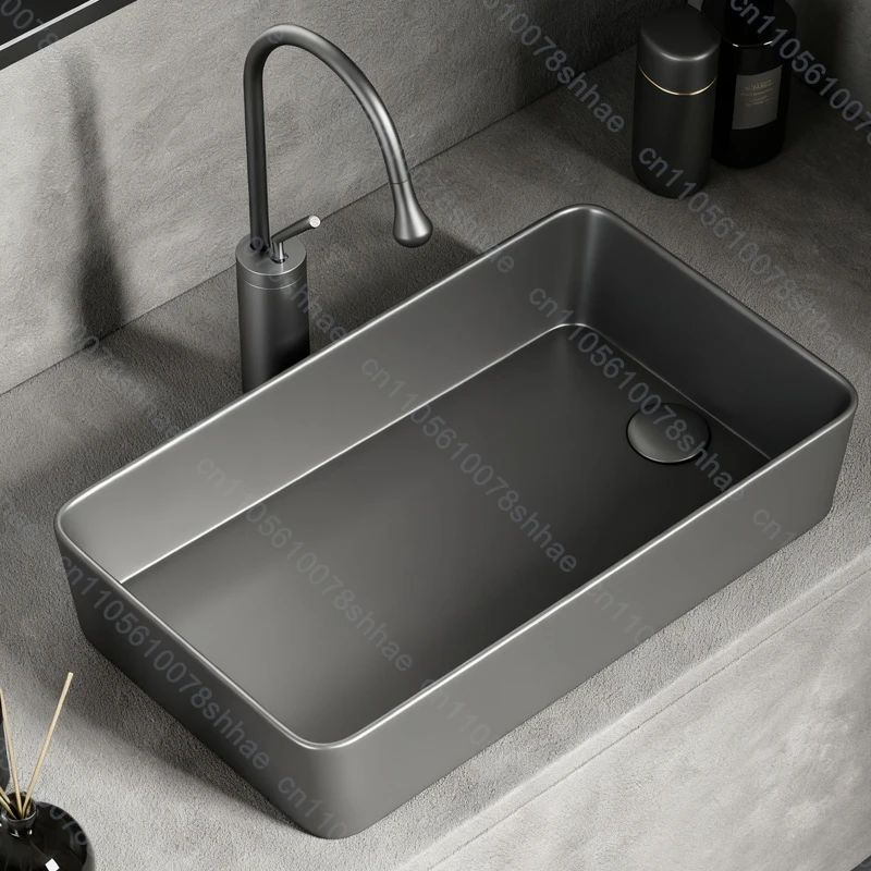 อ่างล้างหน้าเซรามิกหรูหรา ทรงสี่เหลี่ยม สำหรับห้องน้ำ อ่างล้างหน้าบนเคาน์เตอร์ดีไซน์ศิลปะ อ่างล้างหน้าสำหรับโต๊ะเครื่องแป้ง อ่างล้างหน้าเซรามิกสำหรับใช้ในบ้าน