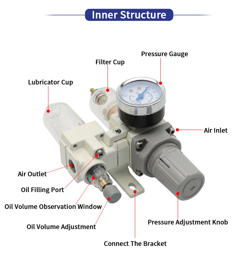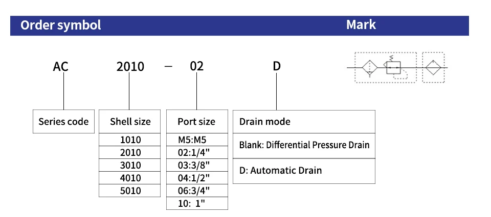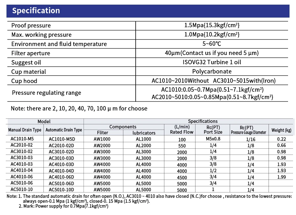 คอมเพรสเซอร์กรองอากาศตัวควบคุมความดันดักนิวเมติกน้ํามันเครื่องแยกน้ําปั๊มคู่มือการระบายน้ํา Supply AC2010-02 SMC ประเภท
