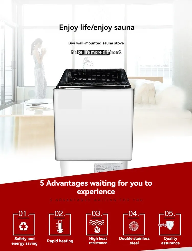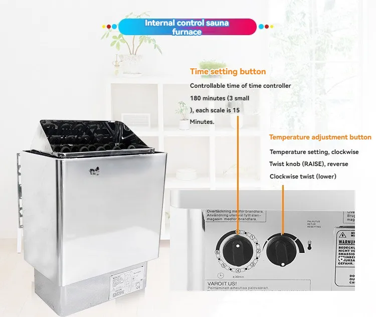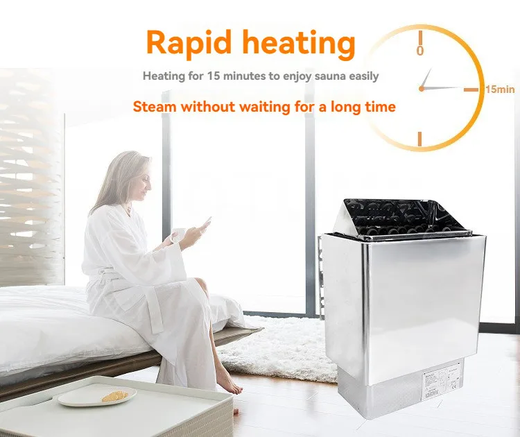 เตาซาวน่าสำหรับอาบน้ำเตาซาวน่าเตาอบไอน้ำแบบแห้งสแตนเลส304เชิงพาณิชย์เครื่องอบไอน้ำแบบแห้งสำหรับใช้ในครัวเรือนเครื่องซาวน่า Roo