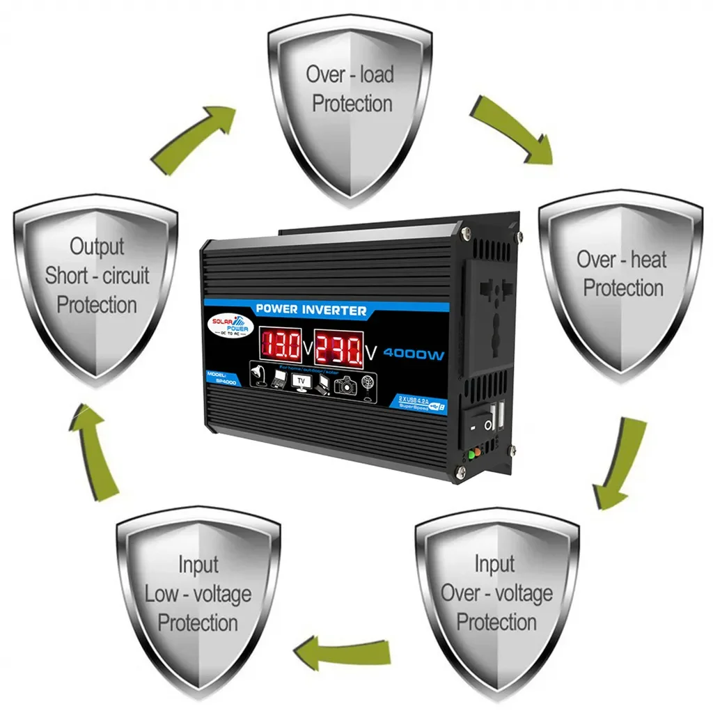 เครื่องแปลงกระแสไฟรถยนต์ DC 12V เป็น AC 220V แรงดันไฟฟ้าในรถยนต์เต้ารับตัวแปลง50Hz พร้อม LED อินเวอร์เตอร์แสดงผลแบบดิจิตอลกำลังไฟสูงสุด4000W/200W