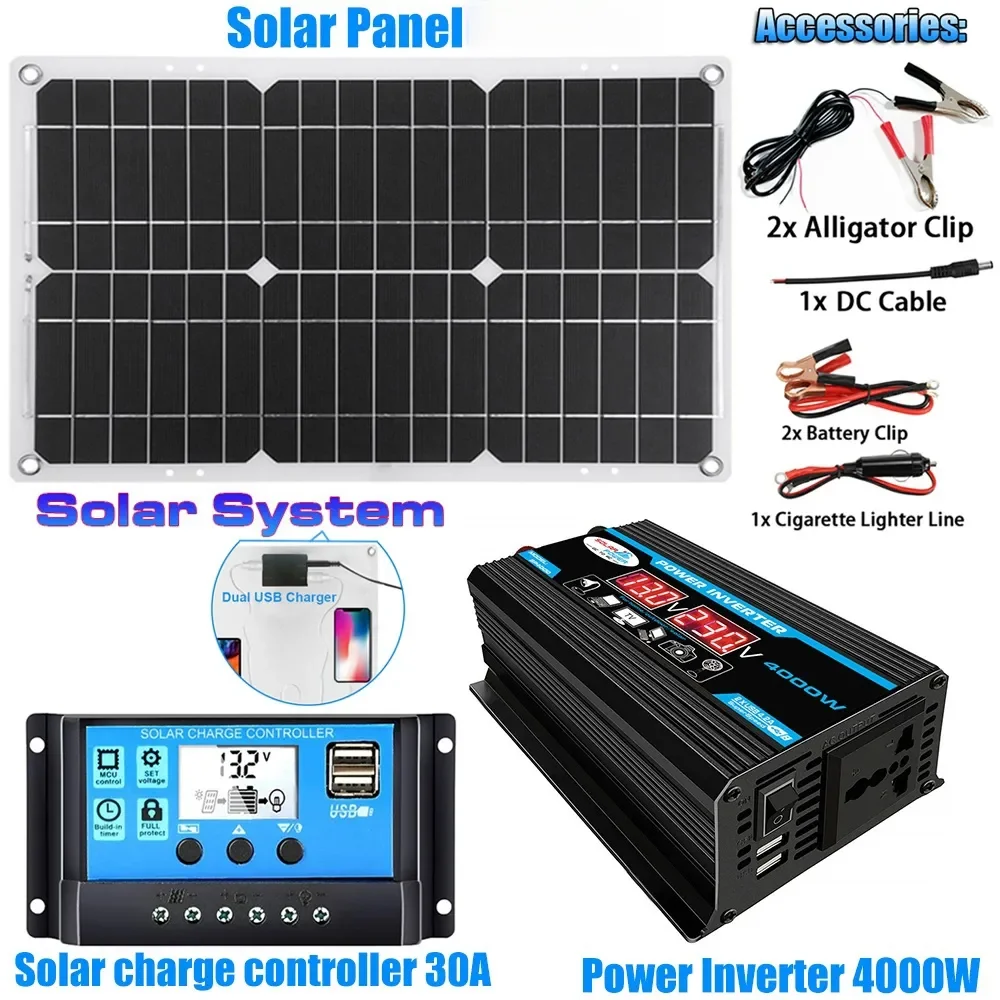 4000W ชุดอินเวอร์เตอร์พลังงานแสงอาทิตย์ 12V to 110 V/220 V ระบบแผงพลังงานแสงอาทิตย์ 12V แผงพลังงานแสงอาทิตย์แบตเตอรี่ Charge Controller power Generation