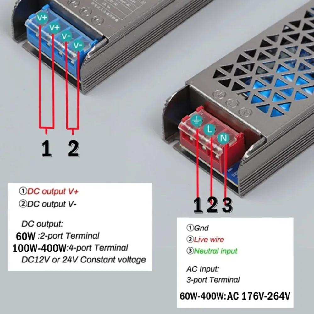 หม้อแปลงไฟฟ้าบางพิเศษ220V เป็น DC12V/24V 60W 100W 200W บ้านเฟอร์นิเจอร์อะแดปเตอร์แปลงไฟแถบไฟ LED จ่ายไฟ
