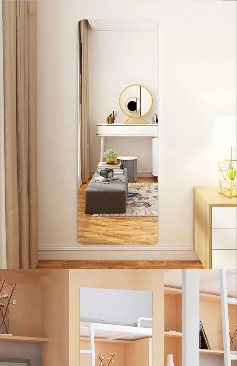กระจกอะคริลิกนิ่มสำหรับวางเมคอัพกระจกอเนกประสงค์สำหรับตกแต่ง dinding kamar tidur ห้องน้ำ