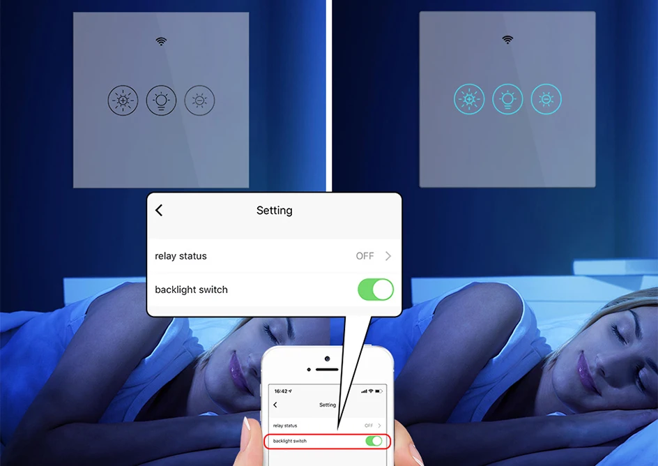 3.เข้ากันได้กับ Alexa และ Google Home สําหรับการควบคุมด้วยเสียงแบบแฮนด์ฟรีพร้อมหรี่แสงได้ 0%-100%;สามารถควบคุมผ่านแอป Smart Life/Tuya ได้ทุกที่ทุกเวลาการตั้งค่าสถานะรีเลย์และจดจําสถานะรีเลย์ล่าสุดที่เป็นตัวเลือกเมื่อปิดเครื่อง สวิตช์เปิด/ปิดไฟแบ็คไลท์