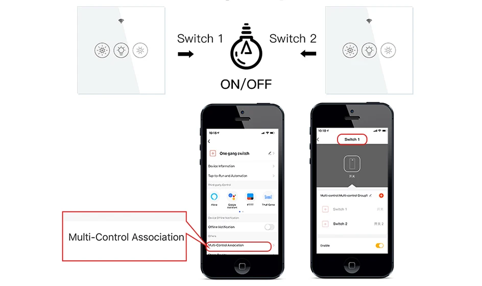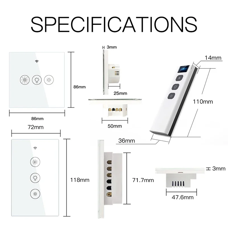 1.การเชื่อมโยงการควบคุมหลายทิศทาง 2/3 เพื่อควบคุมไฟ 1 ดวงด้วยสวิตช์หรี่ไฟหลายตัวแผงกระจกนิรภัยป้องกันรอยขีดข่วนเหมาะกับการตกแต่งบ้านและช่วยให้ควบคุมแบบสัมผัสได้อย่างง่ายดายคุณสามารถเชื่อมโยงสวิตช์นี้กับสวิตช์ที่แตกต่างกันหลายตัวในแอป Smart Life