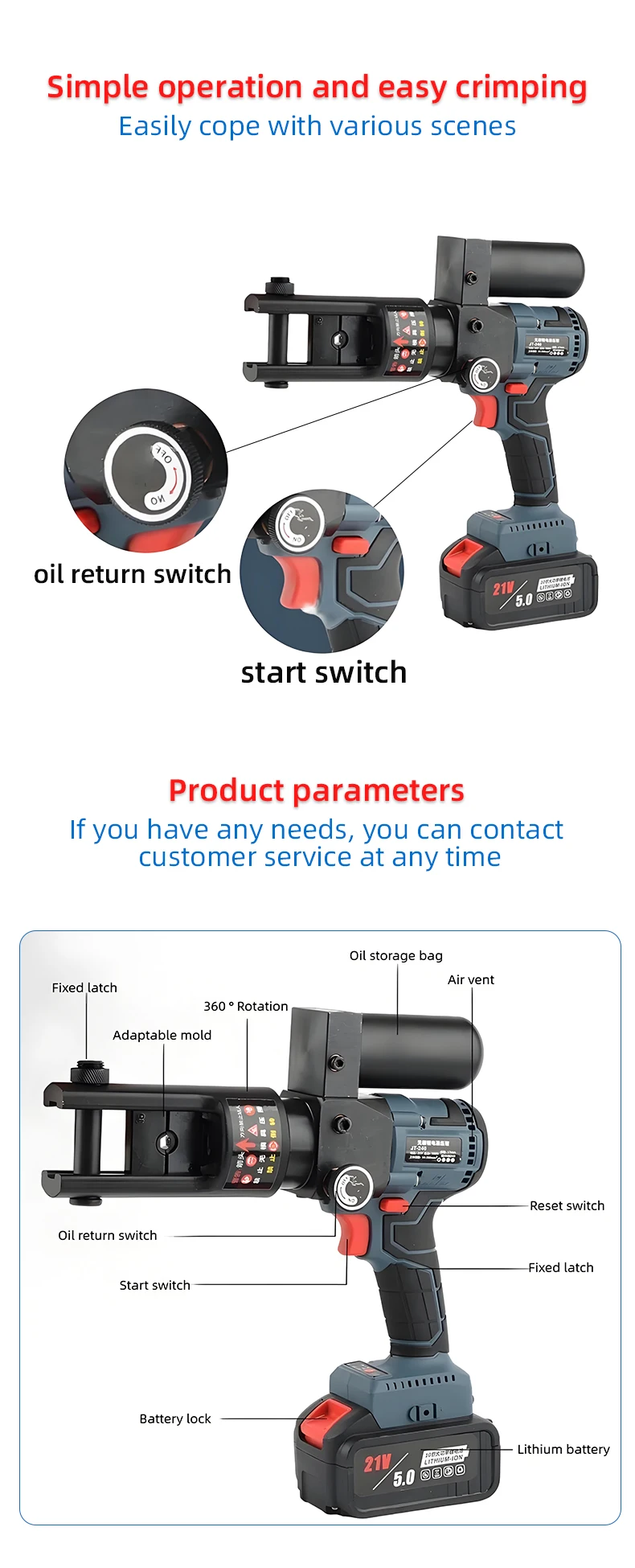 SL240 10-240 มม.ไฟฟ้าไฮดรอลิกลวด CLAMP ทองแดงจมูกมอเตอร์ไร้แปรงชาร์จ Terminal CRIMPING TOOL สําหรับช่างไฟฟ้า