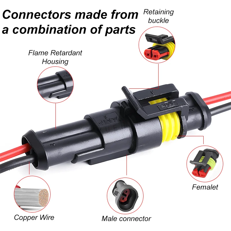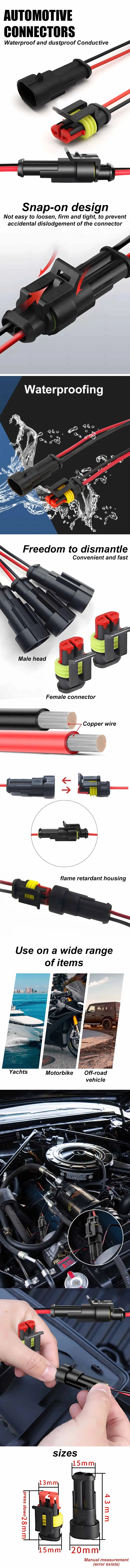 ใช้กันอย่างแพร่หลาย: ขั้วต่อสายไฟรถยนต์เป็นขั้วต่อกันน้ํา 2 พิน เหมาะสําหรับเชื่อมต่อรถจักรยานยนต์ รถจักรยานยนต์ รถจักรยานยนต์ รถยนต์ รถบรรทุก ยานพาหนะสี่ล้อ รถสามล้อ คาราวาน เรือ เรือ และวัสดุลวดอื่นๆ