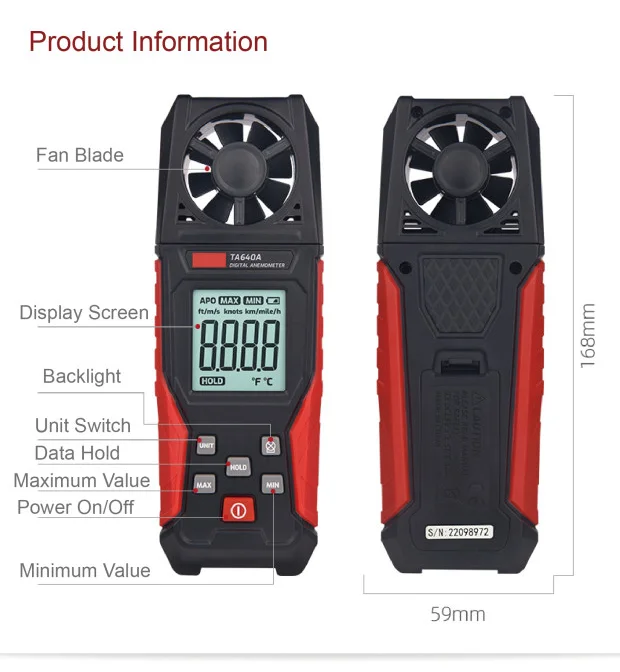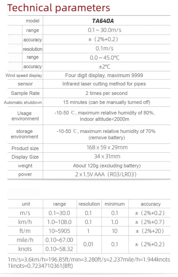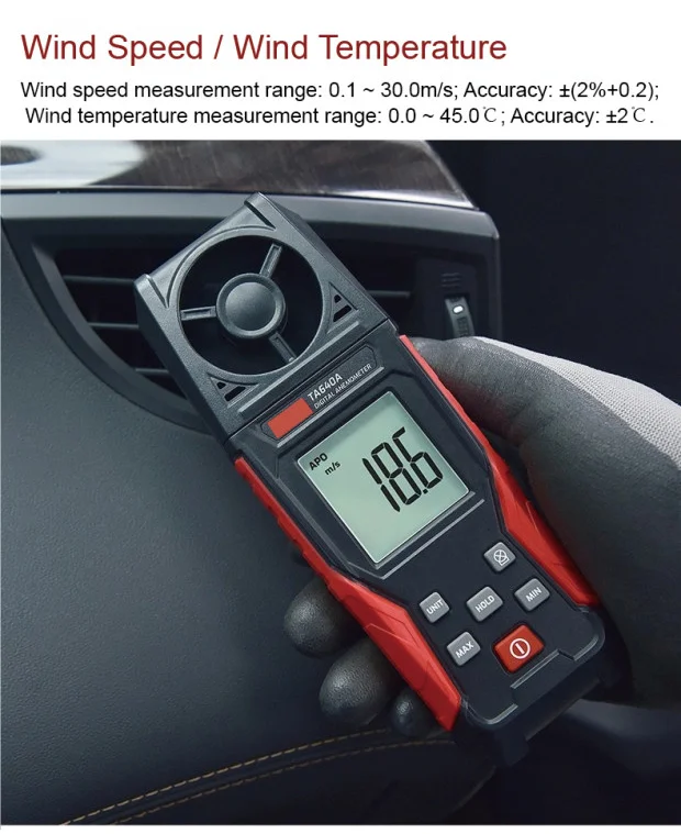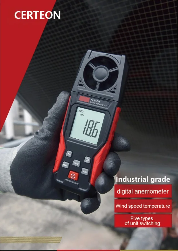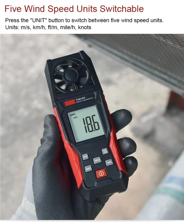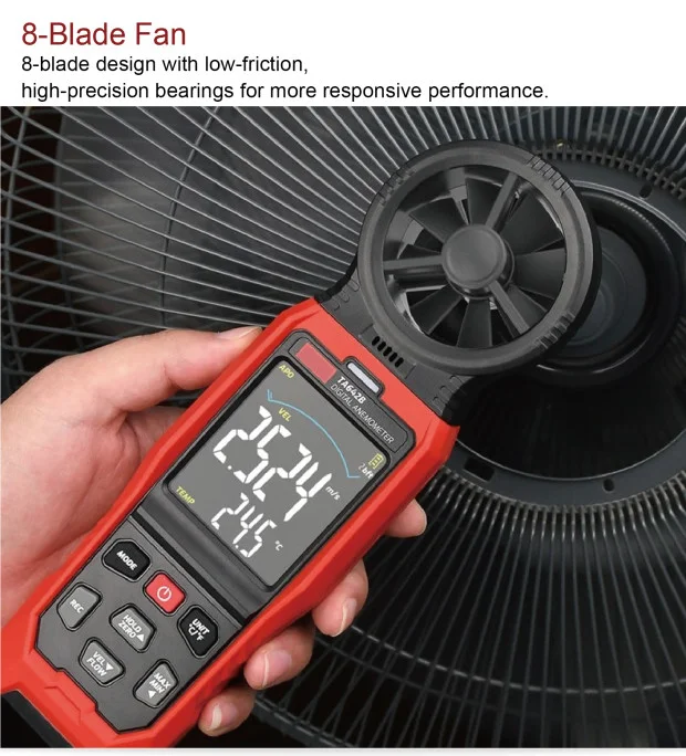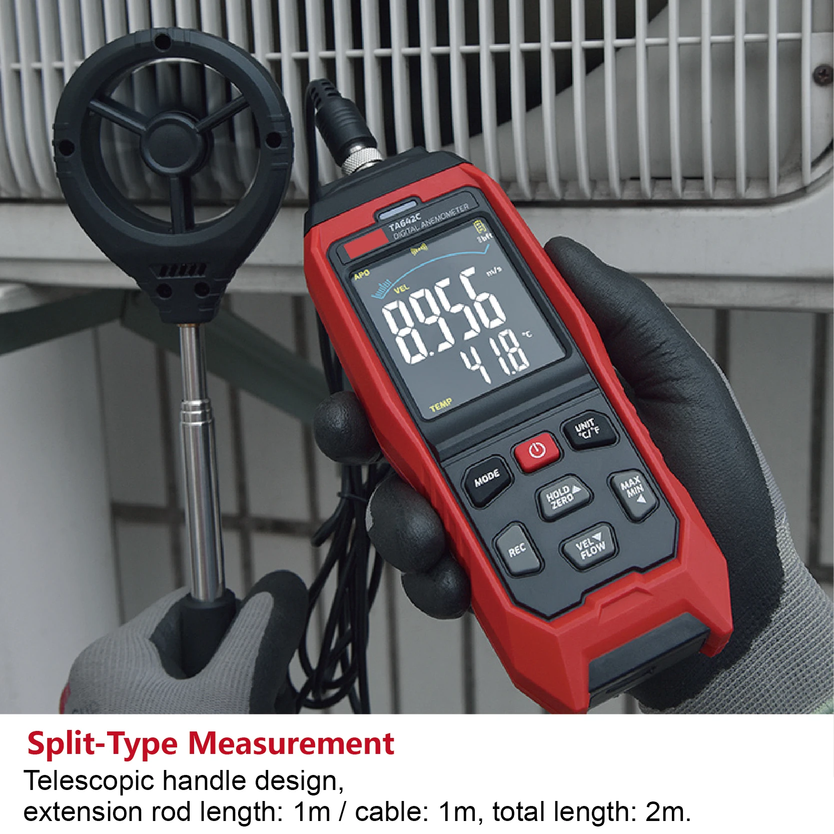 เครื่องวัดความเร็วลมดิจิตอล TA640A/641A/642A พกพา USB ความแม่นยำสูง สำหรับ HVAC มือถือ หน้าจอ LCD บันทึกข้อมูล