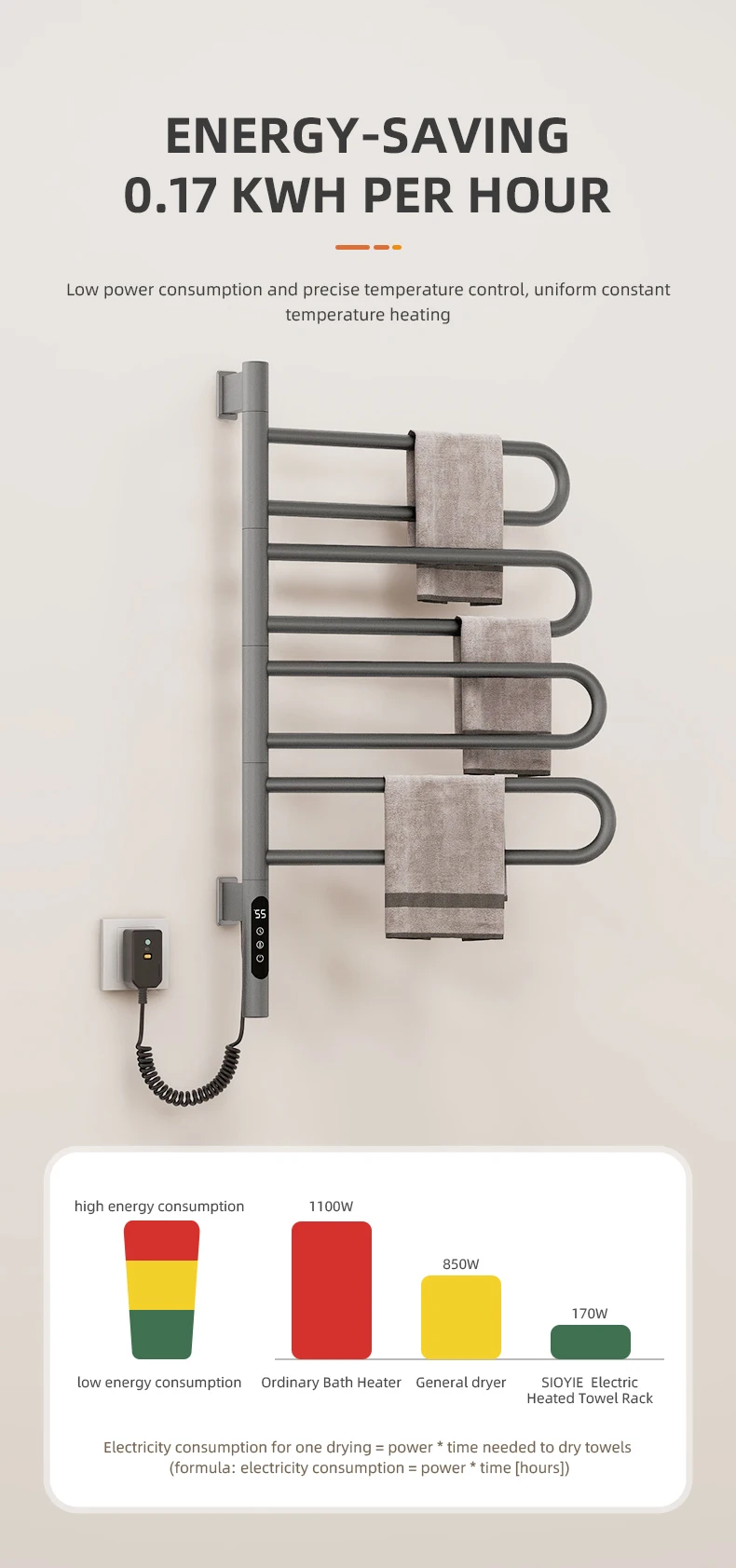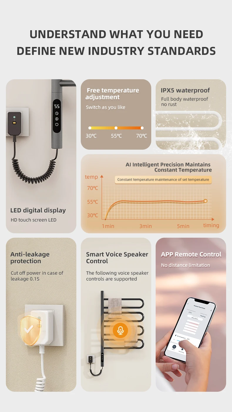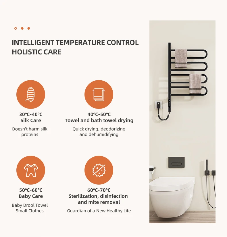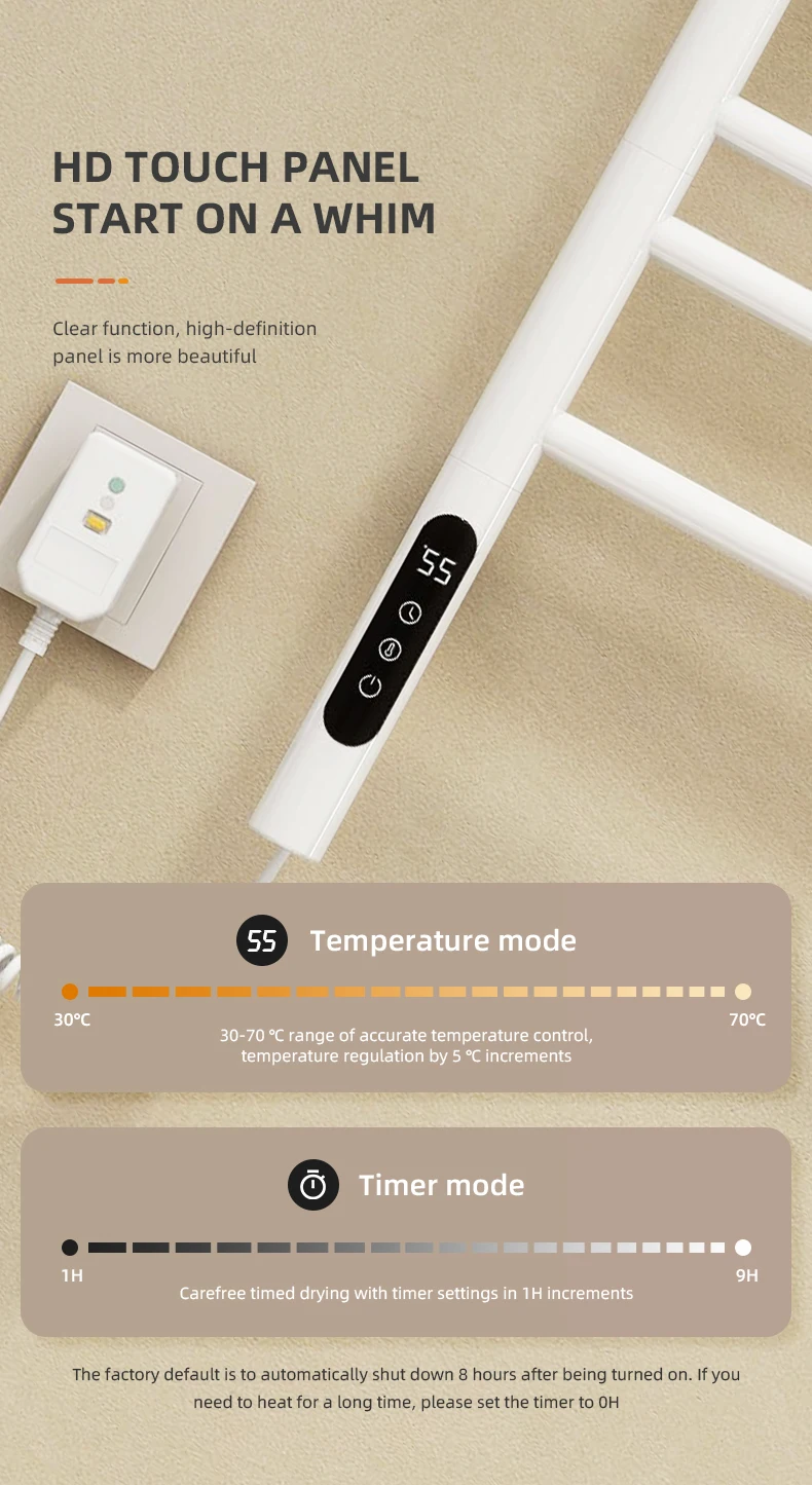 เครื่องทำความร้อนผ้าขนหนู สแตนเลส ควบคุมอุณหภูมิ ควบคุมเวลา ฆ่าเชื้อ เฟอร์นิเจอร์ห้องน้ำ เครื่องทำความร้อนไฟฟ้า เครื่องอุ่นผ้าขนหนู
