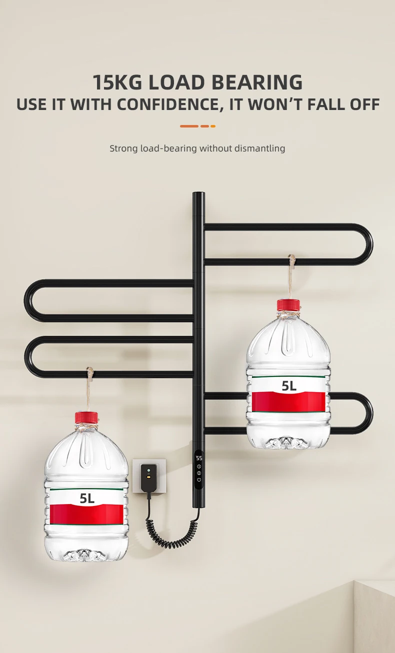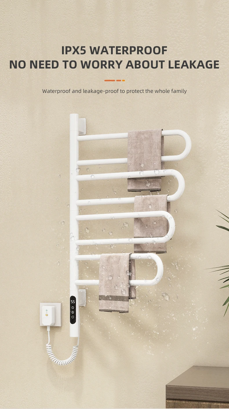 เครื่องอุ่นผ้าเช็ดตัวไฟฟ้าเกรดโรงแรมพร้อมตัวจับเวลาติดผนังอุ่น Bath Rack เครื่องเป่าและเครื่องทําความร้อนชั้นวางผ้าเช็ดตัวสําหรับห้องน้ํา