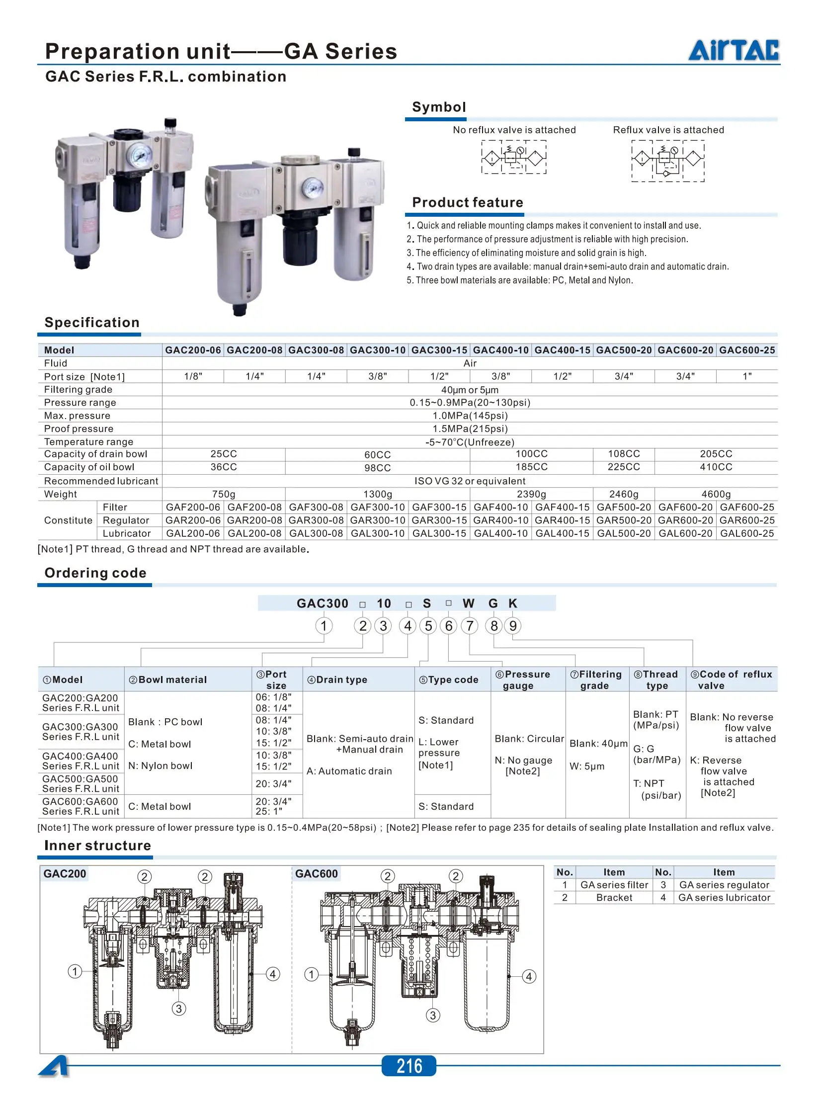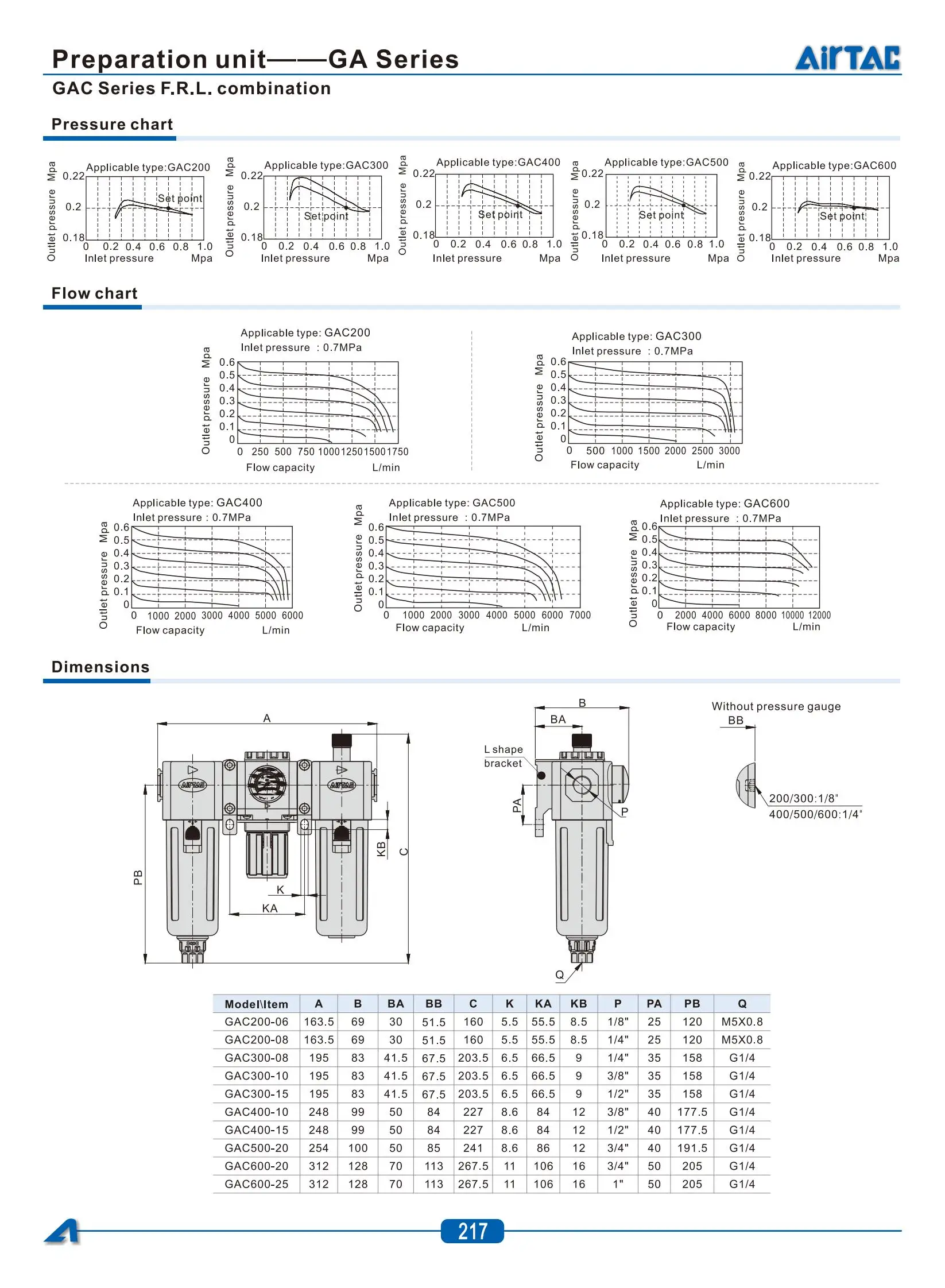 Airtac นิวเมติกควบคุมความดันกรอง GAC20006/30008/40010/15/600C-20/25S Air Source Processor