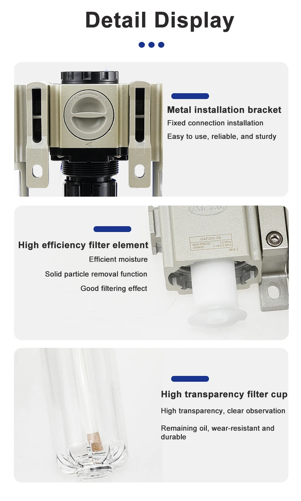 SFR-200 1/4 SFR-300 3/8 SFR-400 1/2 Air Compressor ความชื้นน้ําน้ํามันหล่อลื่นดักทองแดงกรอง Air Regulator