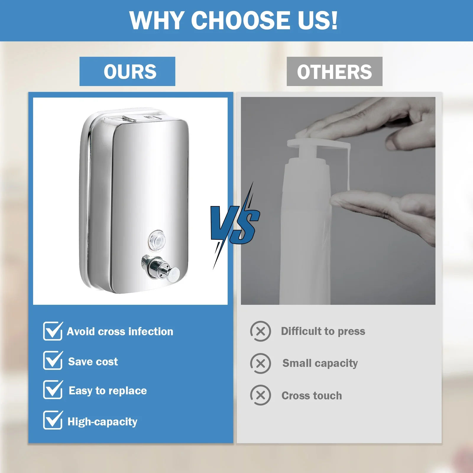 Soap Dispenser Wall Mount Bathroom Manual Liquid Soap Detergent |