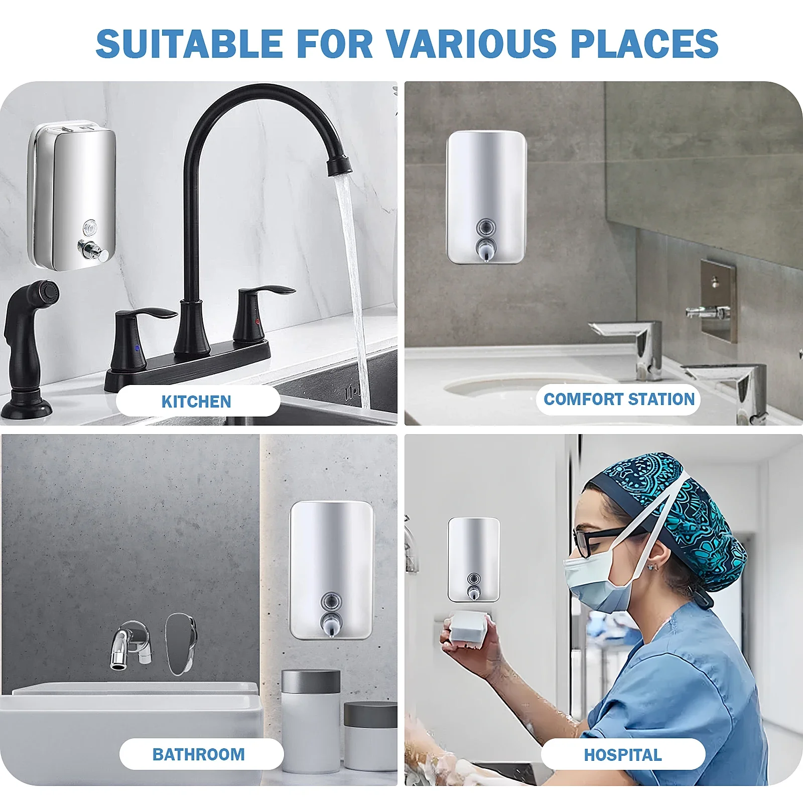 850 ML/1050 ML เครื่องจ่ายสบู่สแตนเลส Wall Mount ห้องน้ําสบู่เหลวผงซักฟอกเจลอาบน้ําขวดห้องน้ําห้องครัว