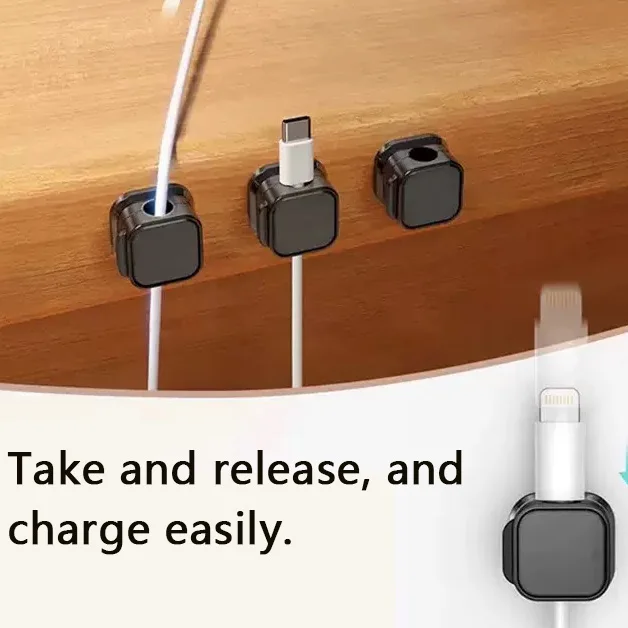 คลิปหนีบสายแม่เหล็ก 6 ชิ้น ที่ยึดสายไฟปรับได้ จัดระเบียบสายไฟใต้โต๊ะ ที่เก็บสายไฟ