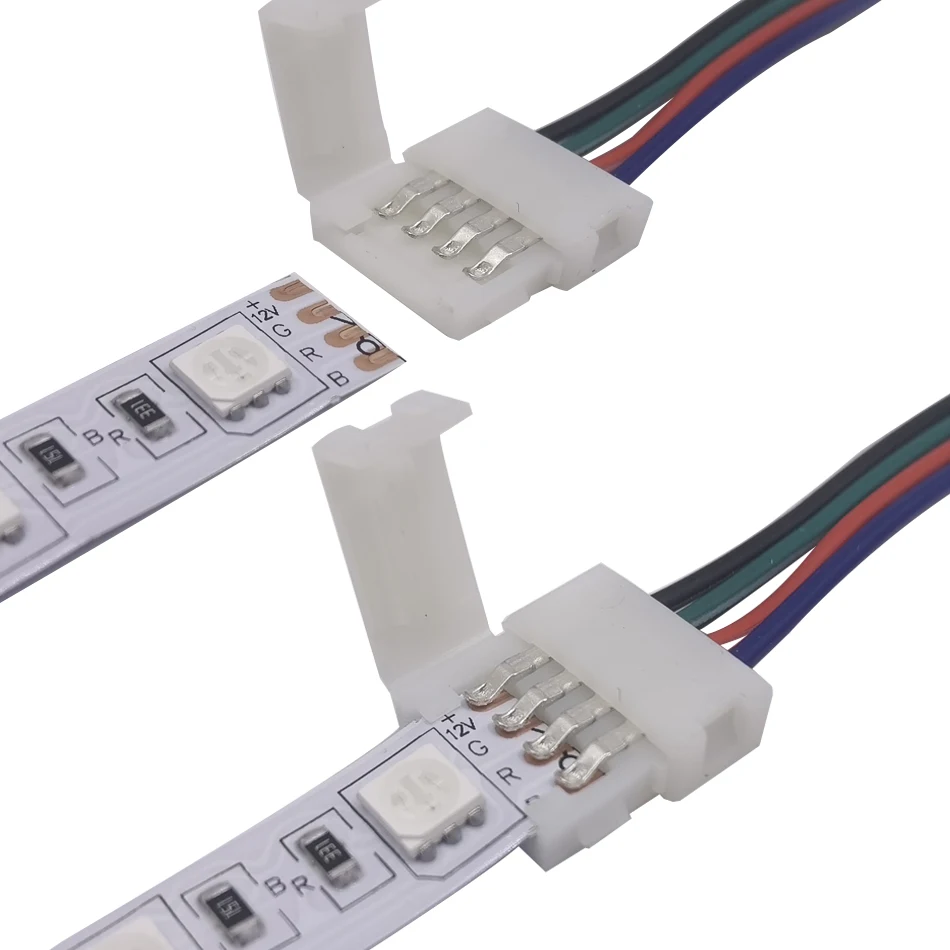 10 มม.4Pin 5050 LED RGB Strip Extension Connector สายไฟ Led Strip สายคลิปสําหรับ 5-24V 5050 RGB LED light strip
