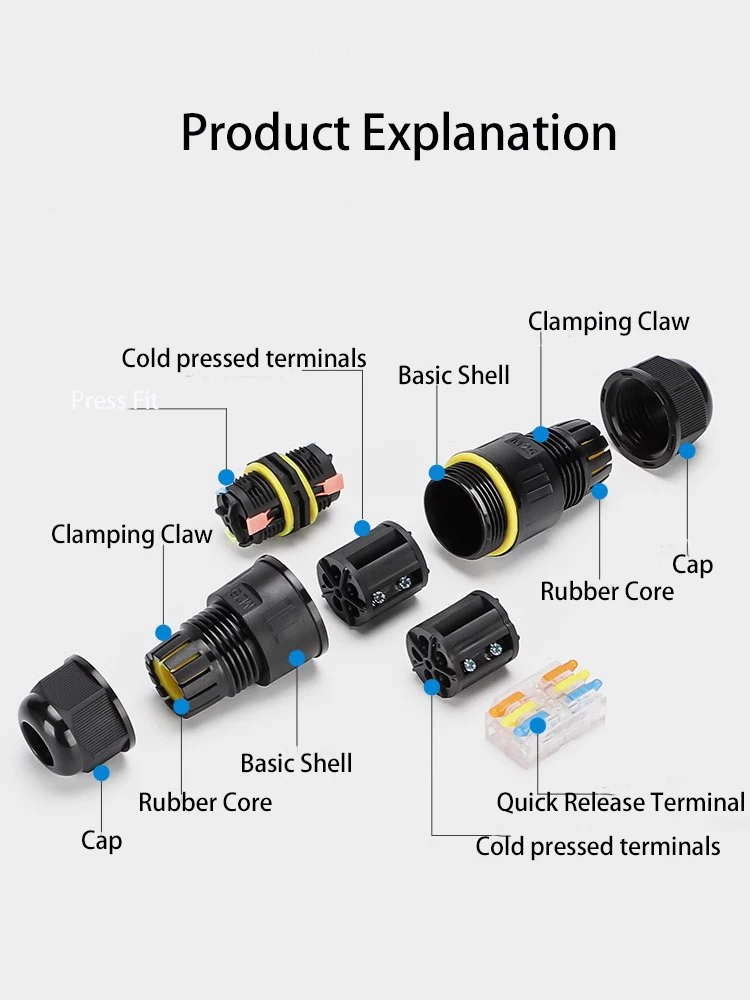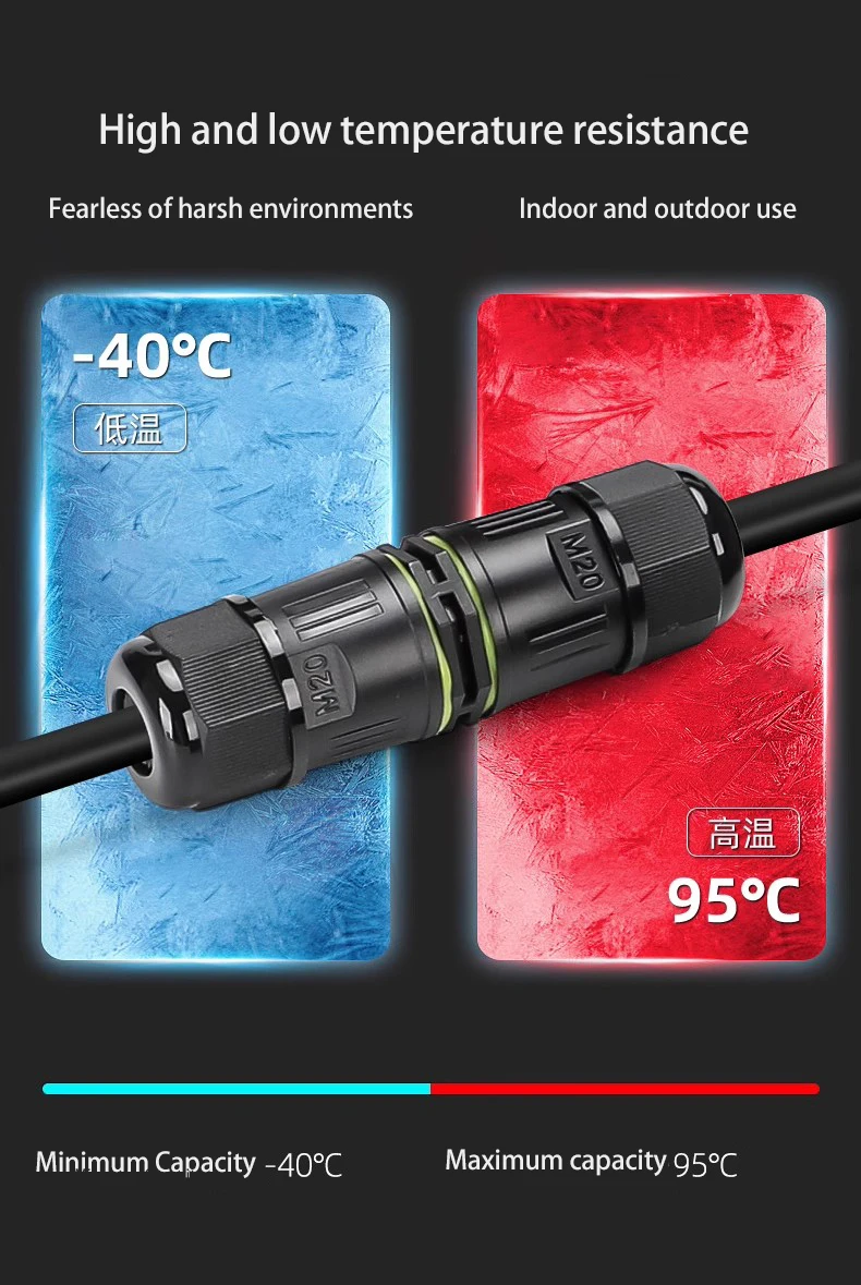 IP68 กันน้ํากลางแจ้ง Connector T-type สายไฟและสาย Quick Coupling 2/3/4/5 Core โคมไฟถนนกลางแจ้งกันฝน Terminal Block