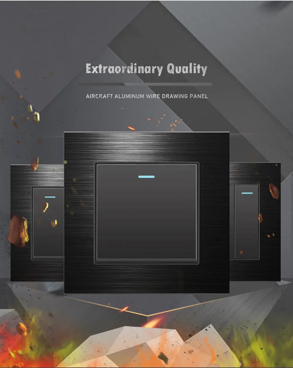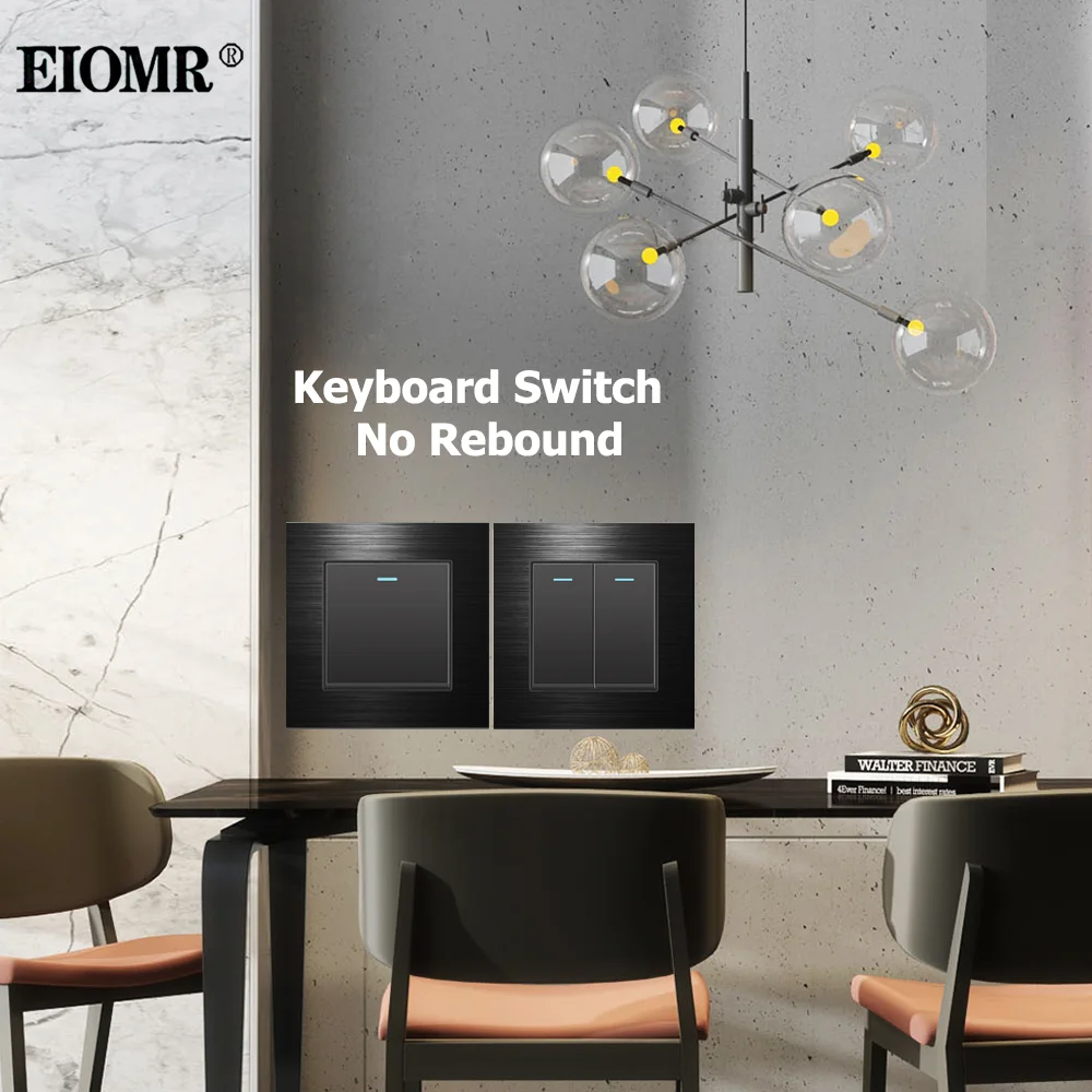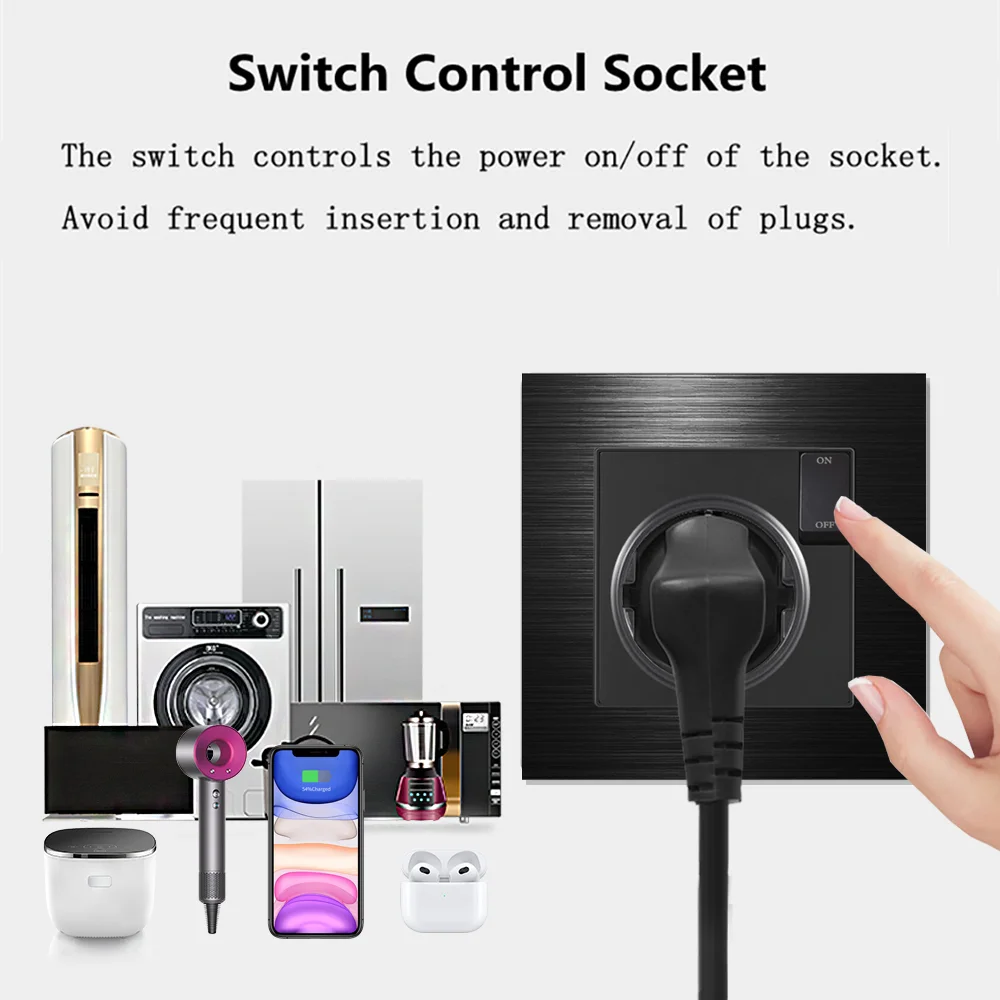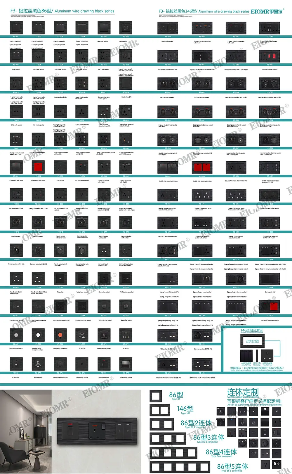 Eiomr 16A สวิตช์ STOP kontak listrik มาตรฐาน EU ขนาด86มม. และ146มม. แผงระบายอลูมิเนียมสีดำสำหรับเครื่องใช้ในบ้าน