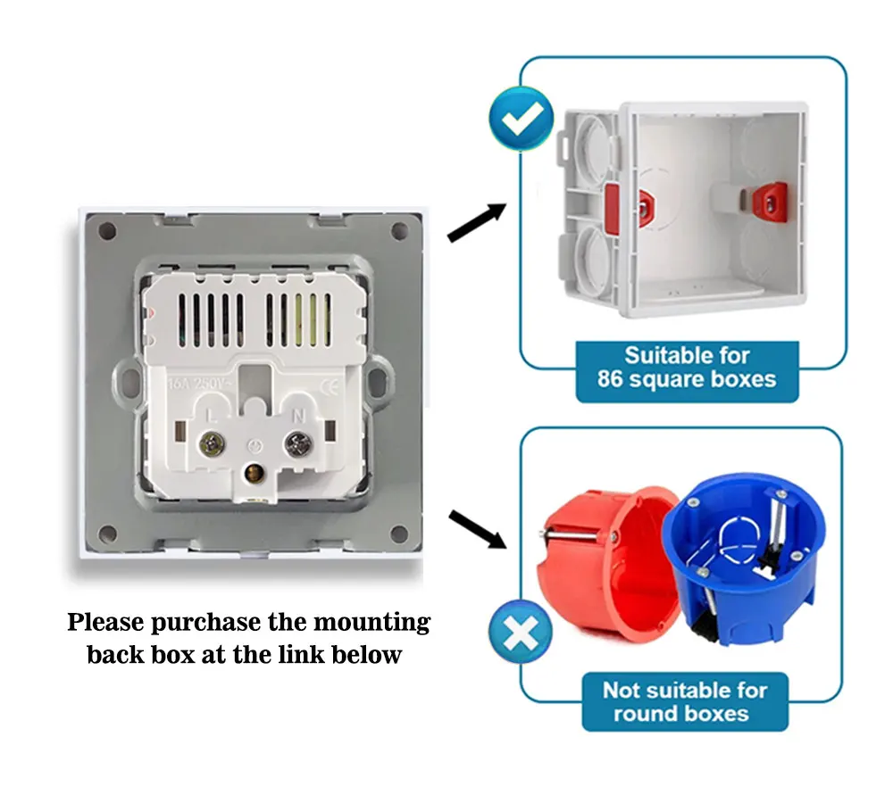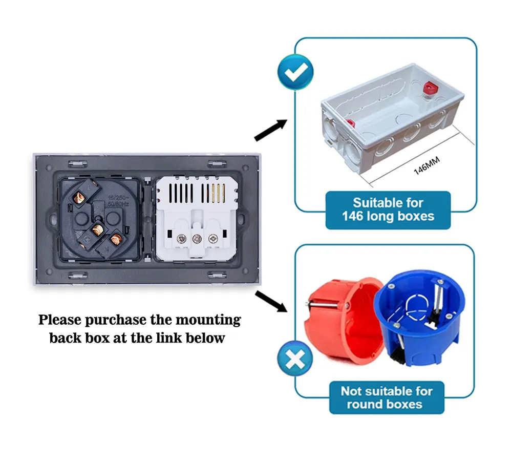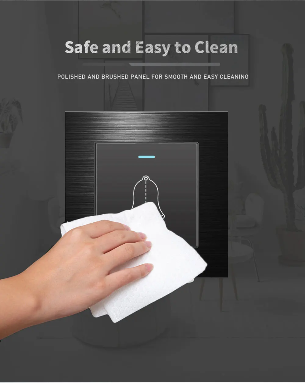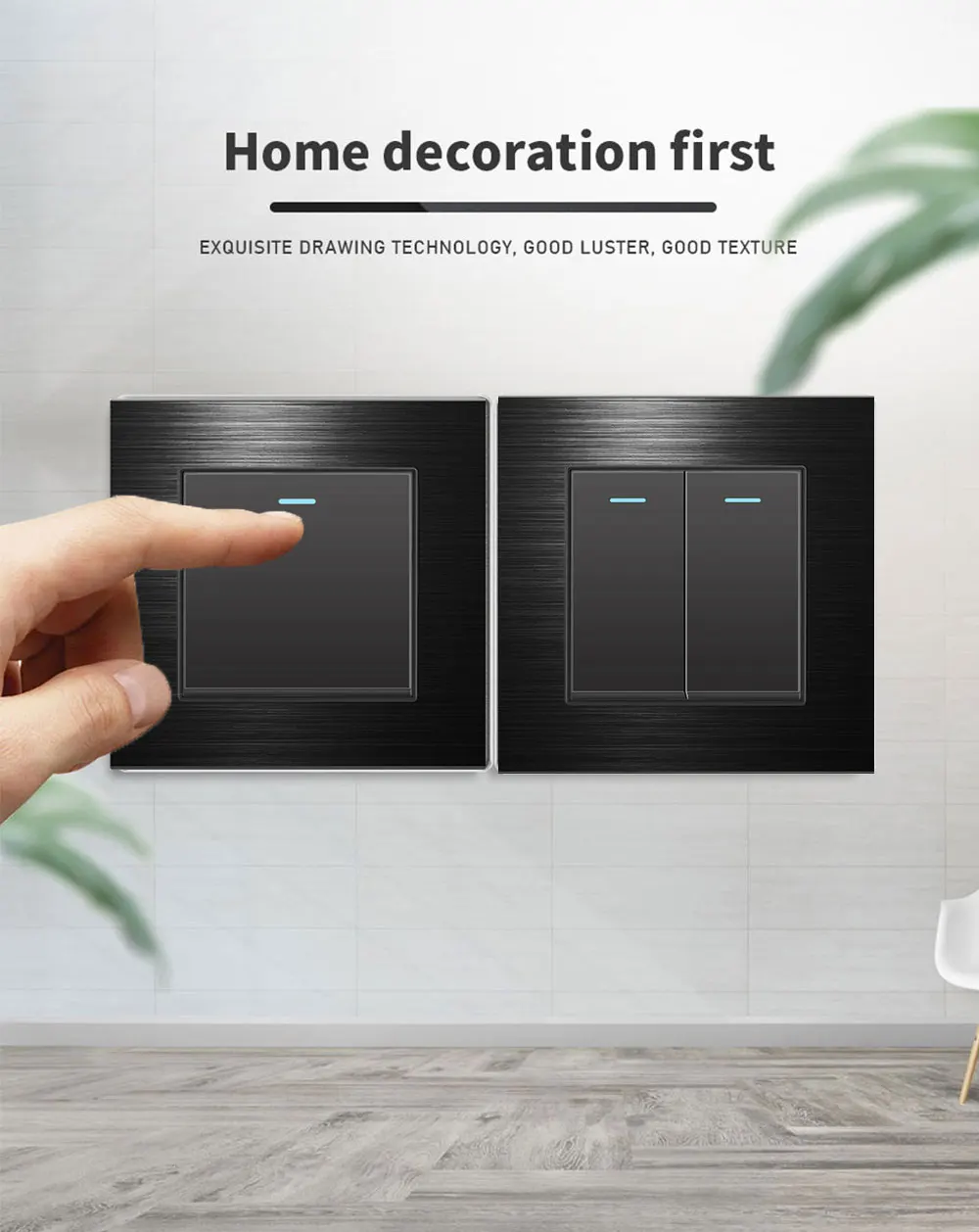 Eiomr 16A สวิตช์ STOP kontak listrik มาตรฐาน EU ขนาด86มม. และ146มม. แผงระบายอลูมิเนียมสีดำสำหรับเครื่องใช้ในบ้าน