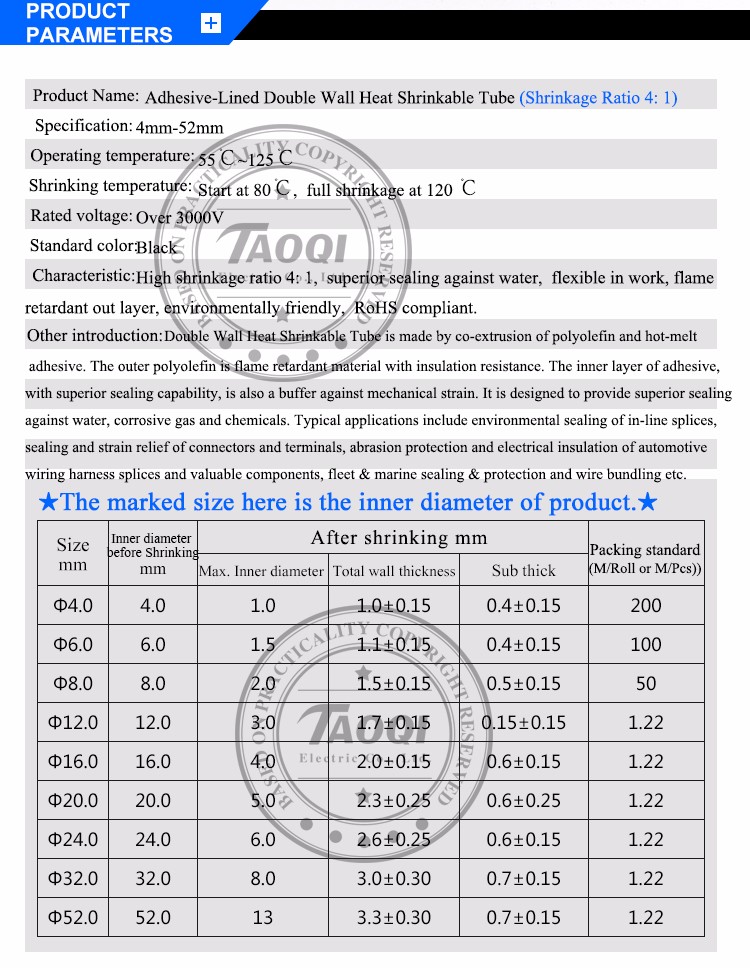 4 มม.-72 มม.4:1 ความร้อนหดท่อกาวท่อกาวเรียงราย Dual Wall Heatshrink Shrink หดห่อสายไฟชุด