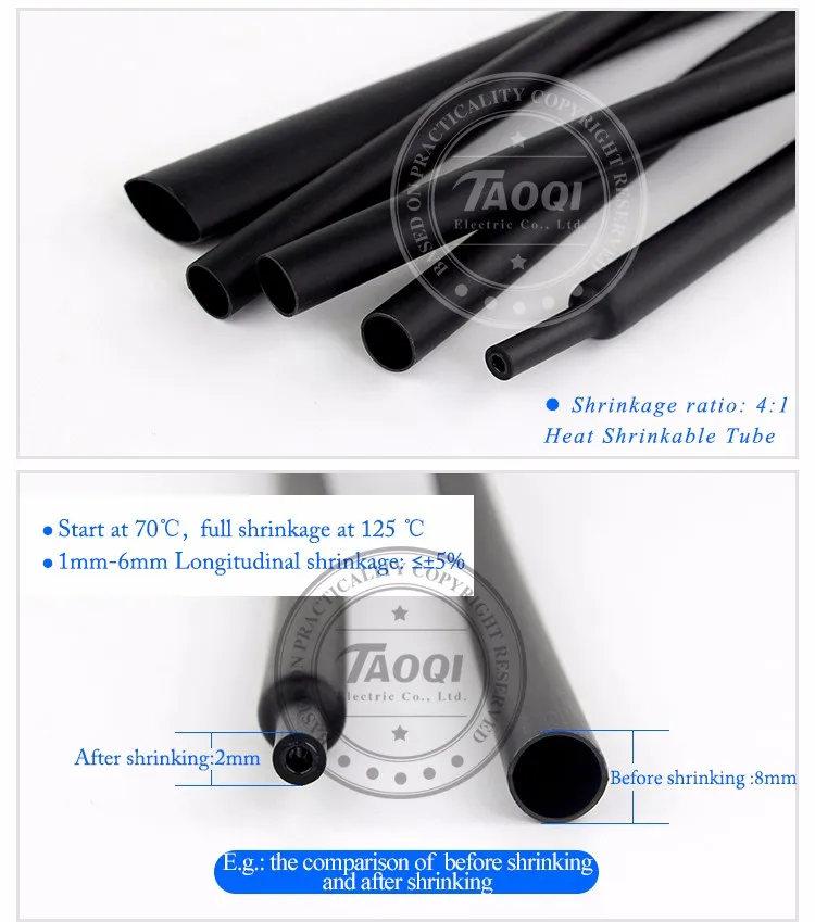 ชุดท่อหดแบบใช้ความร้อนสีดํา ท่อทนความร้อน หดลวด ห่อสายเคเบิลเชื่อมต่อไฟฟ้า ปลอกหุ้มฉนวนป้องกัน