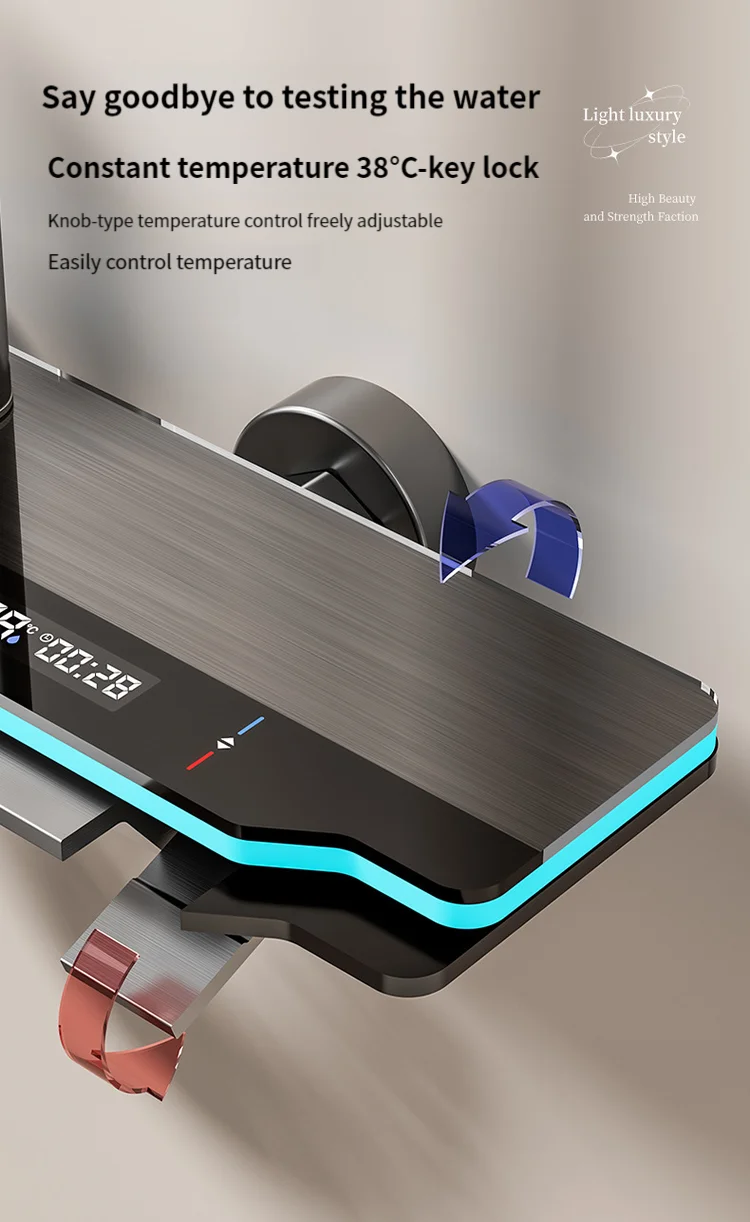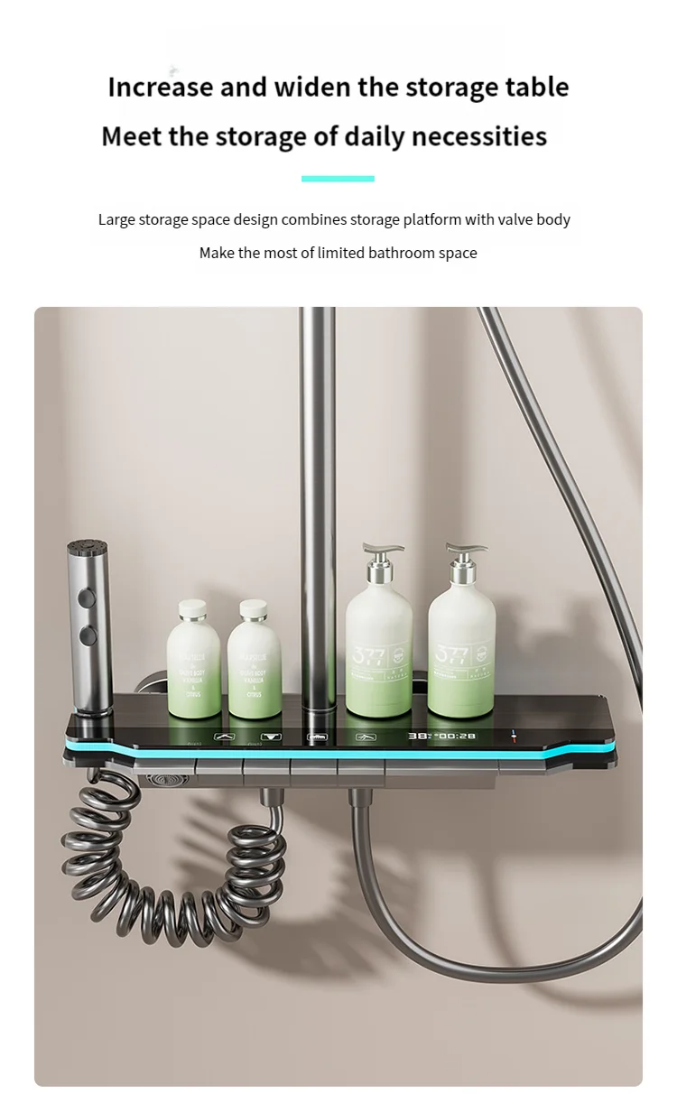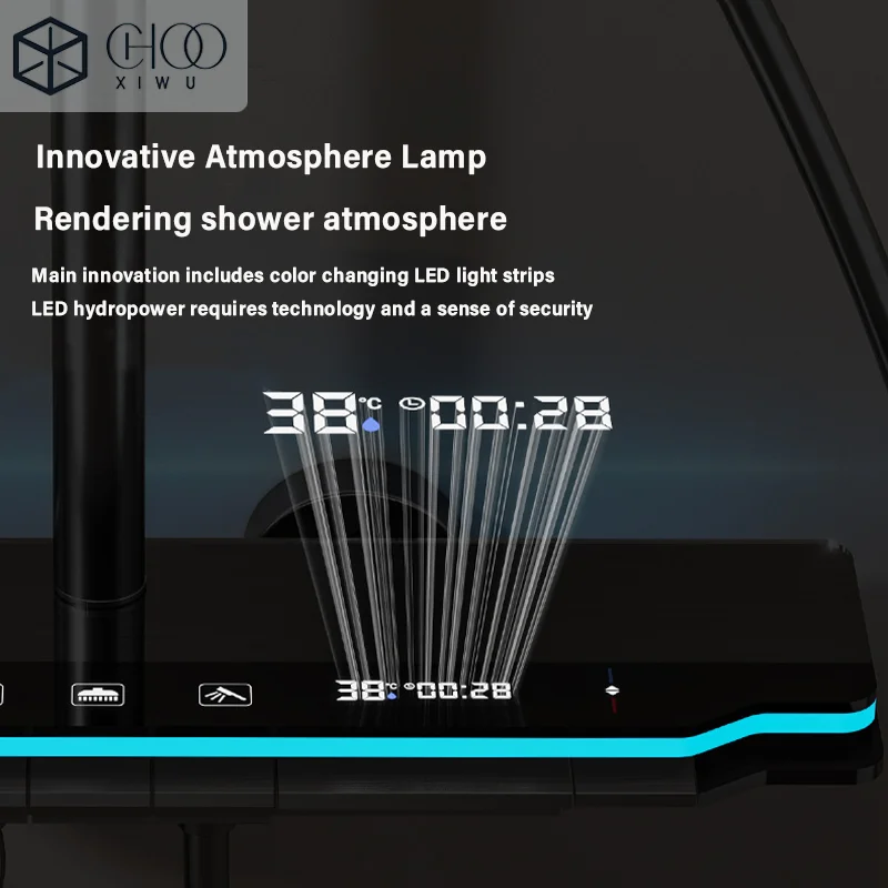ชุดฝักบัวอาบน้ํา Ambient Light ปุ่มเปียโนชุดโมเดิร์นดิจิตอลจอแสดงผลฝักบัวก๊อกน้ําชุดอุปกรณ์ห้องน้ํา