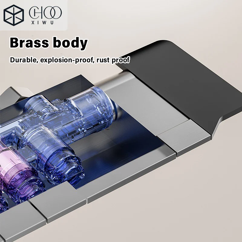 มือจับเดี่ยวทำจากทองเหลืองสีดำก๊อกน้ำในห้องน้ำแบบตั้งพื้นดีไซน์แบบฝังทั้งน้ำเย็นและร้อนดีไซน์แบบเรียบง่ายหรูหรา
