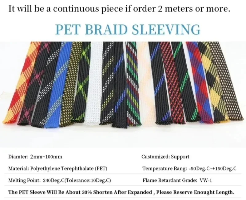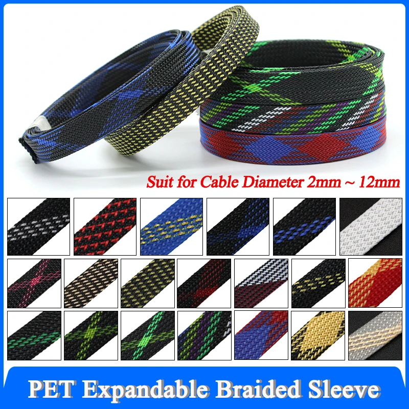 1/5M 2 4 6 8 10 12 มม.สัตว์เลี้ยงสายถักขยายแน่นความหนาแน่นสูงฉนวนสายป้องกันลวดห่อ Sheath 19 สี