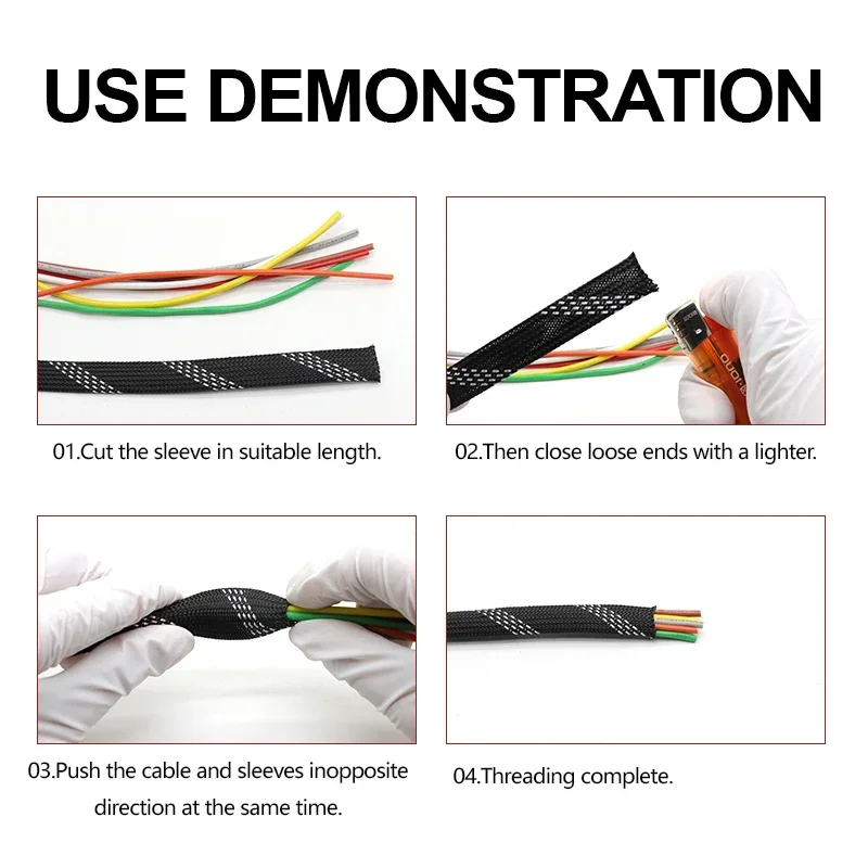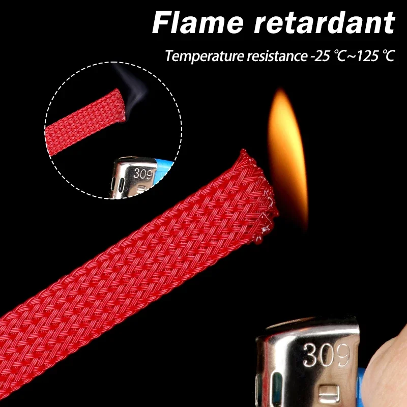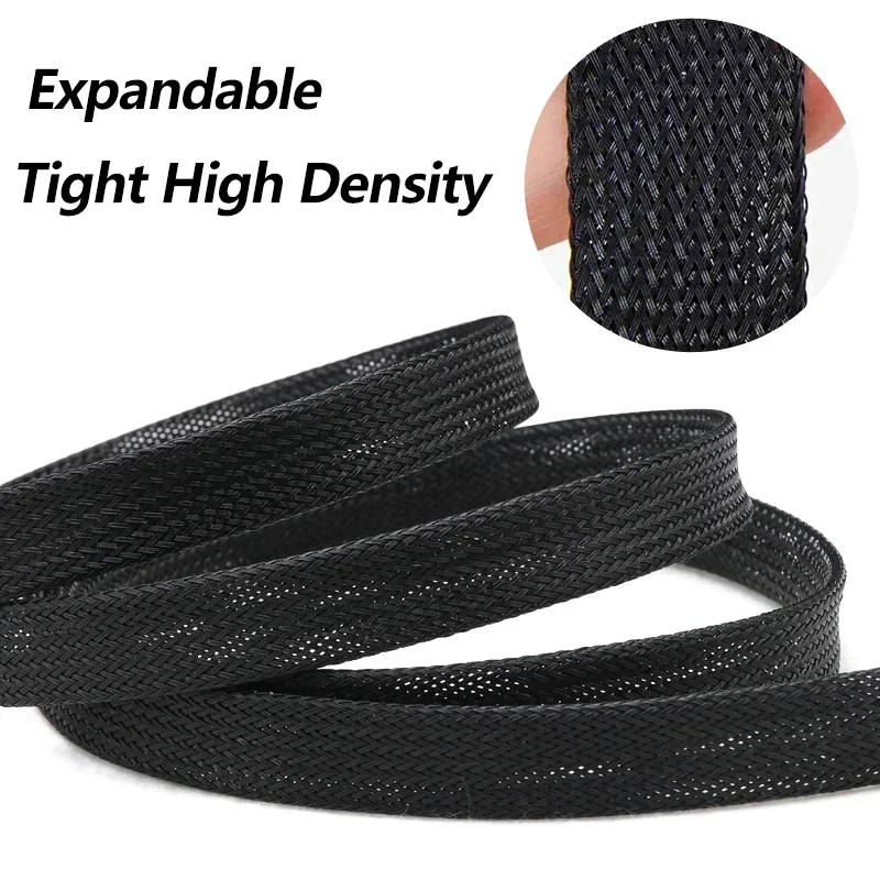 10M สีดําฉนวน Braid Sleeving 4-30 มม.PET Wire CABLE GLAND ป้องกันสายเคเบิลทนไฟไนลอนหลอด