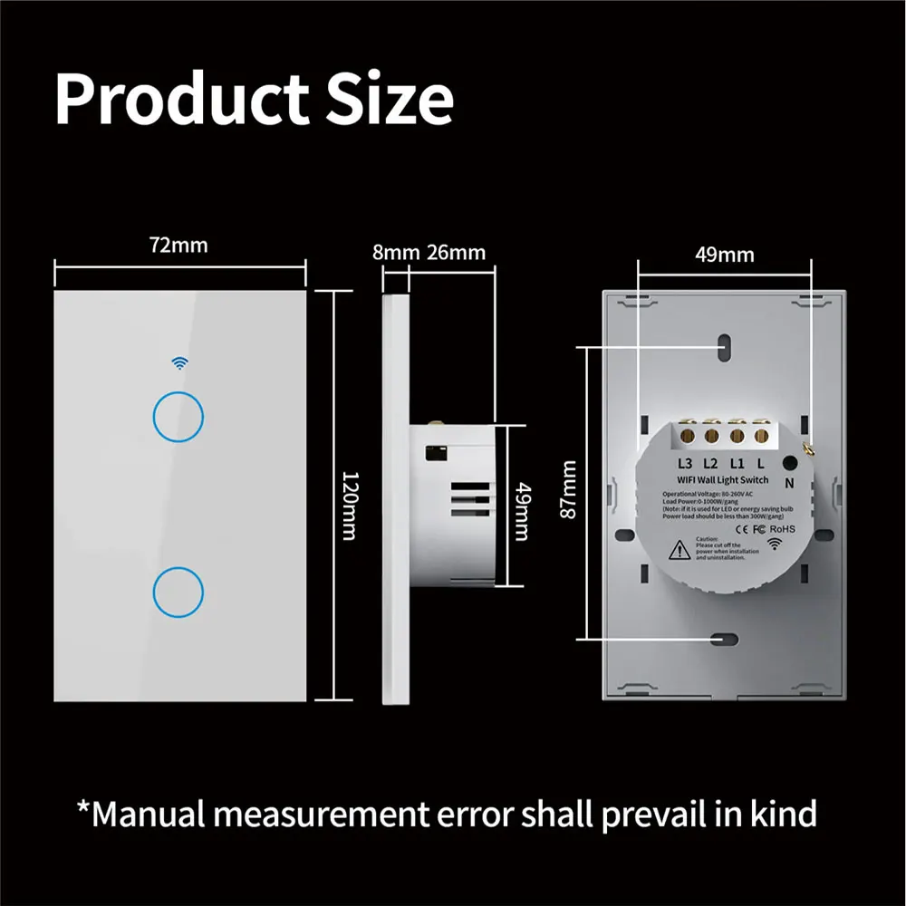 Tuya US WiFi สมาร์ทสวิตช์ผนัง RF433 1/2/3/4 GANG ไม่มี Neutral Wire Touch Sensor สวิทช์ไฟ LED สมาร์ท Alexa Google Home