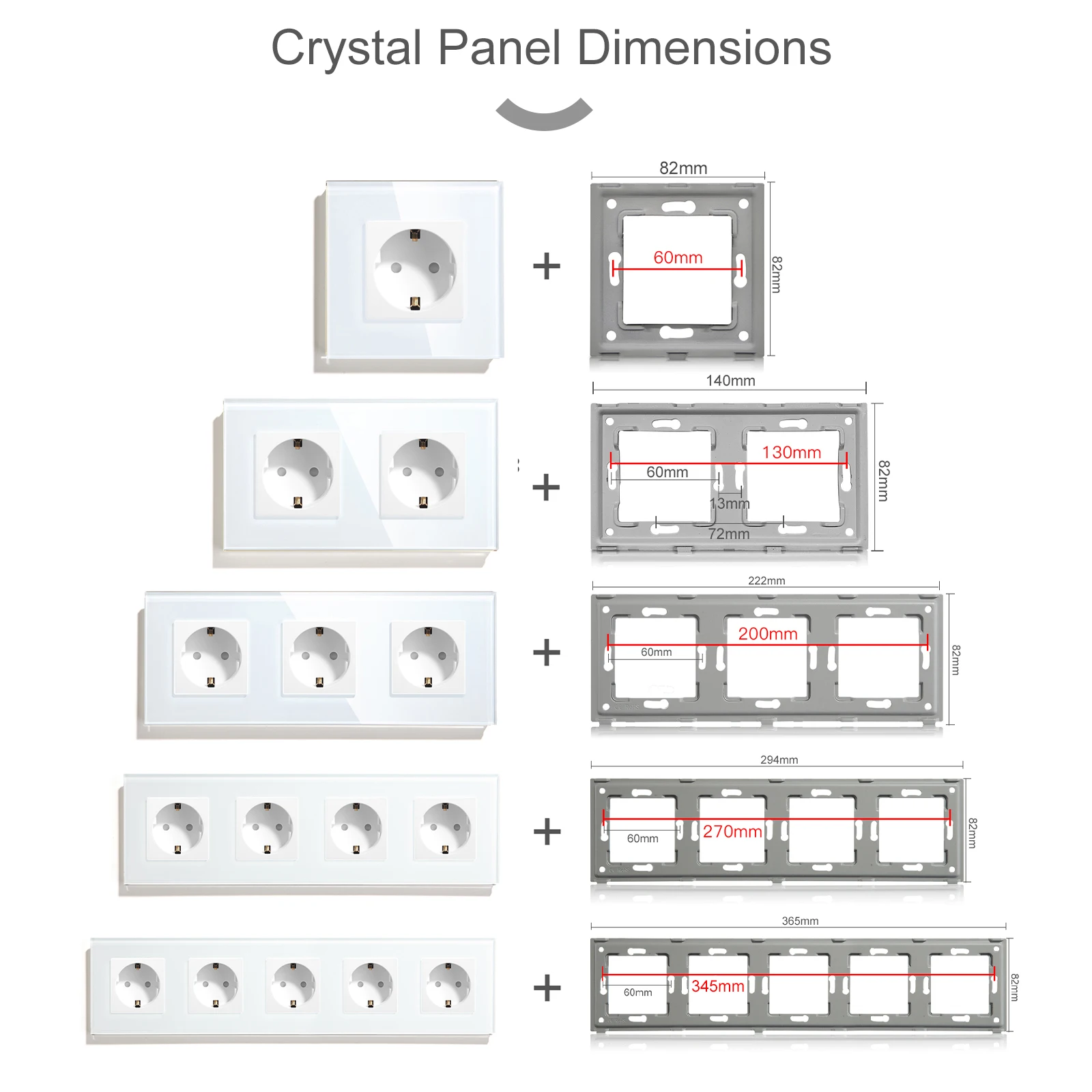 BSEED เดี่ยว EU Socket Double Power Outlets Triple ซ็อกเก็ตไฟฟ้าแก้วคริสตัลผนังซ็อกเก็ตสีขาวสีดําทองสีเทา 16A